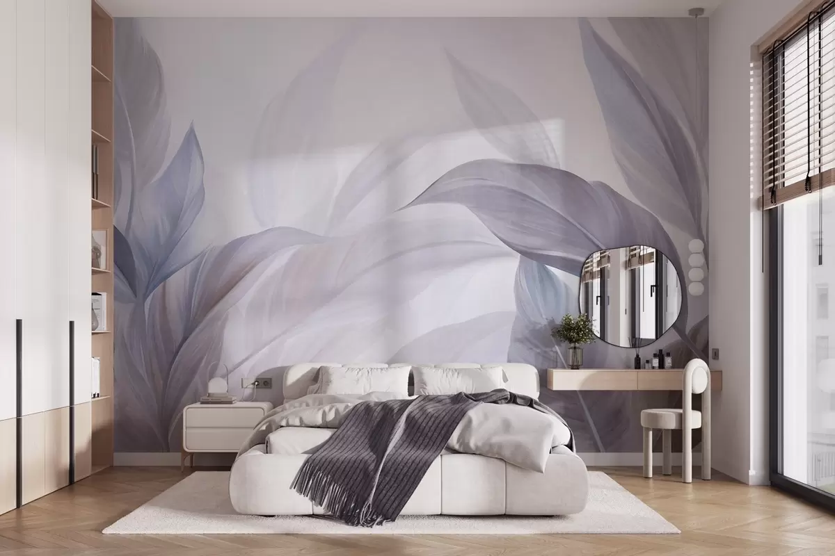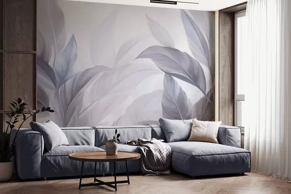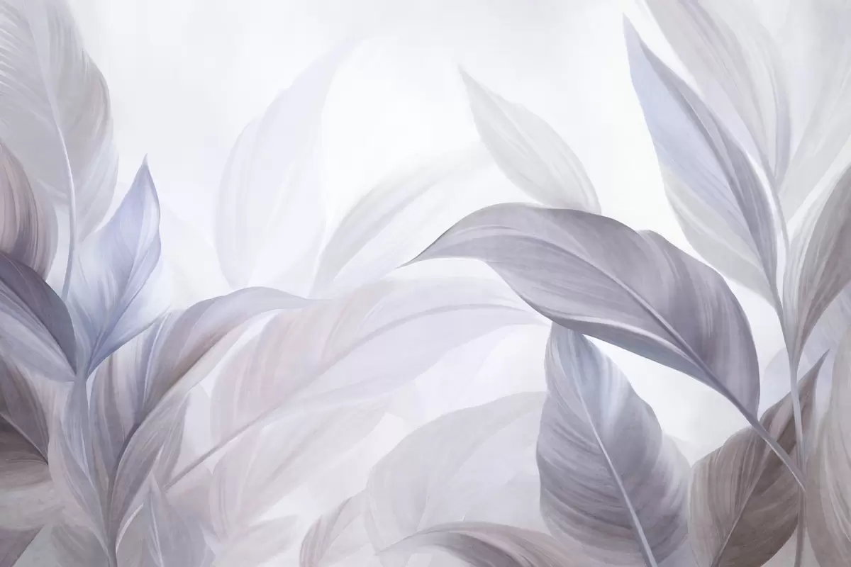Fototapety Veľké tropické listy v bledomodrej a fialovej farbe s jemnými pastelovými odtieňmi a zaujímavou štruktúrou Nr. w09816v1