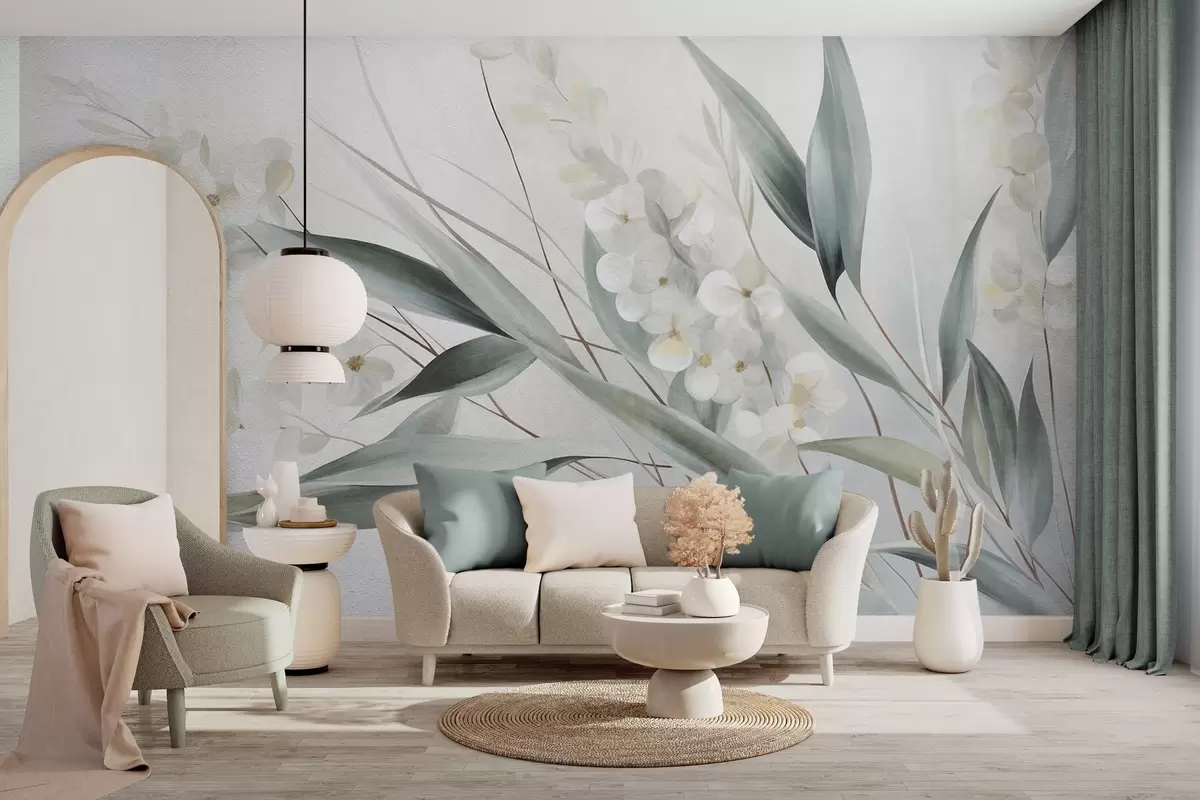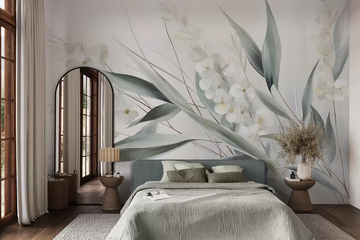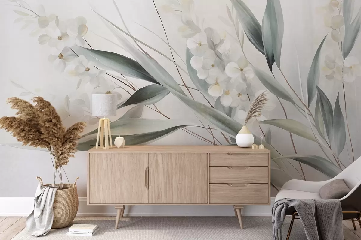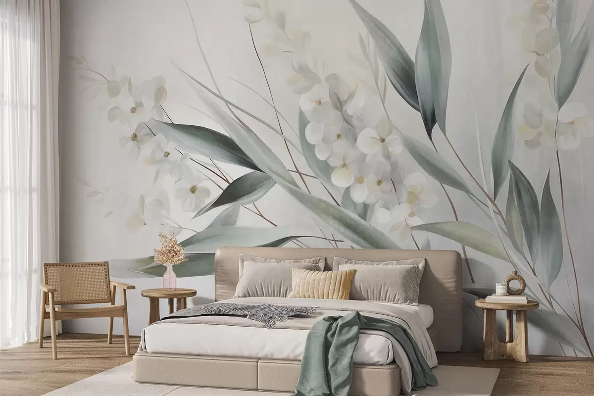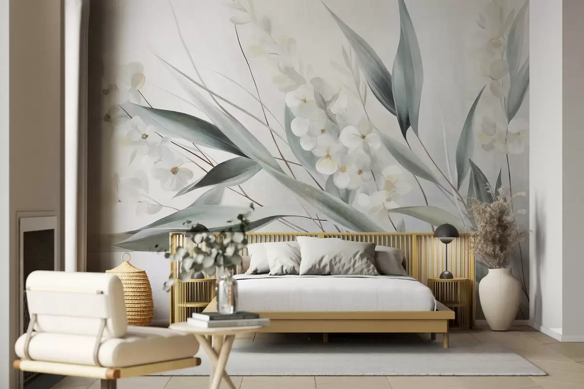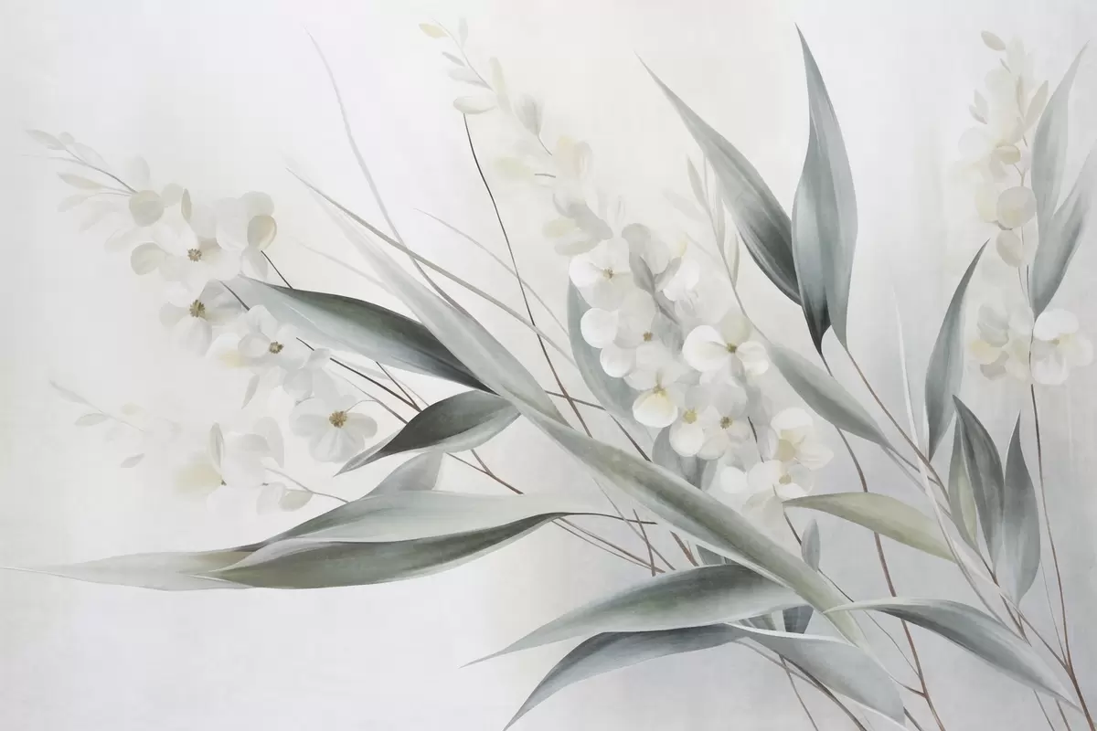 Fototapety Krehké kvety a dlhé zelené listy v maliarskom štýle s jemnými ťahmi štetca, textúrované umenie Nr. w09827