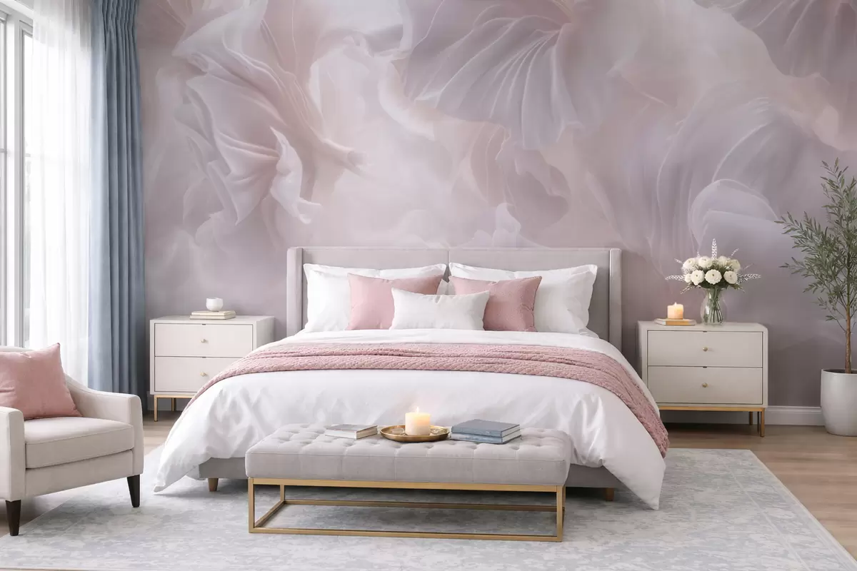 Fototapety Abstraktné kvetinové motívy s vlniacimi sa okvetnými lístkami v pastelových odtieňoch Nr. w09841