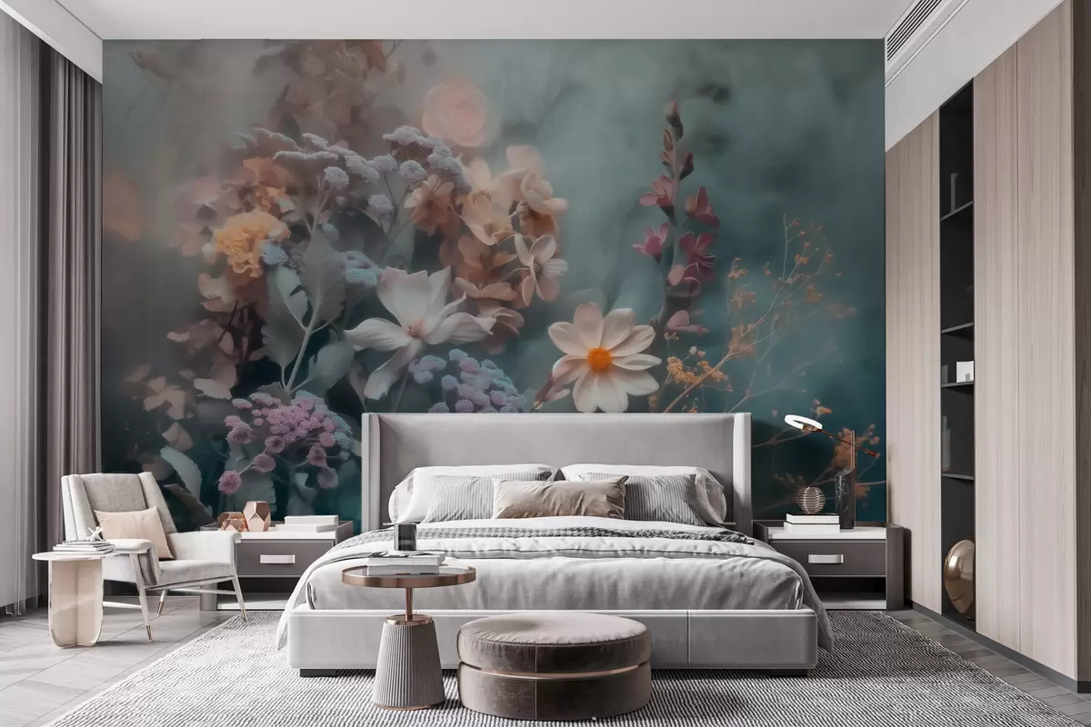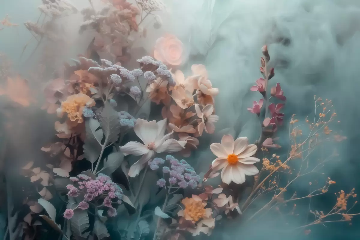 Fototapety Rozprávková kompozícia poľných kvetov v jemnom opare pastelových odtieňov Nr. w09846