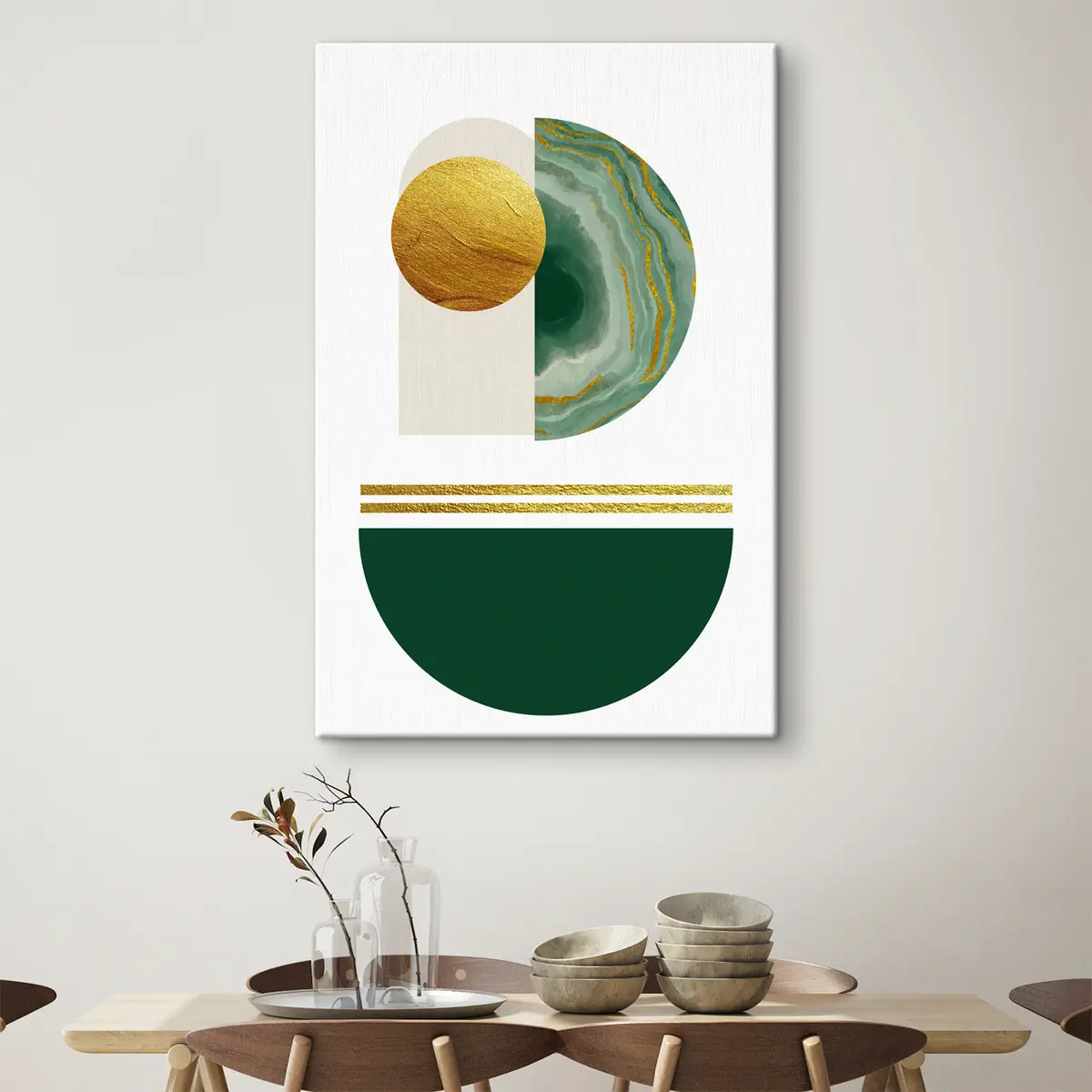 Obraz Geometrické zelené polkruhy a žltý kruh Nr. s35986