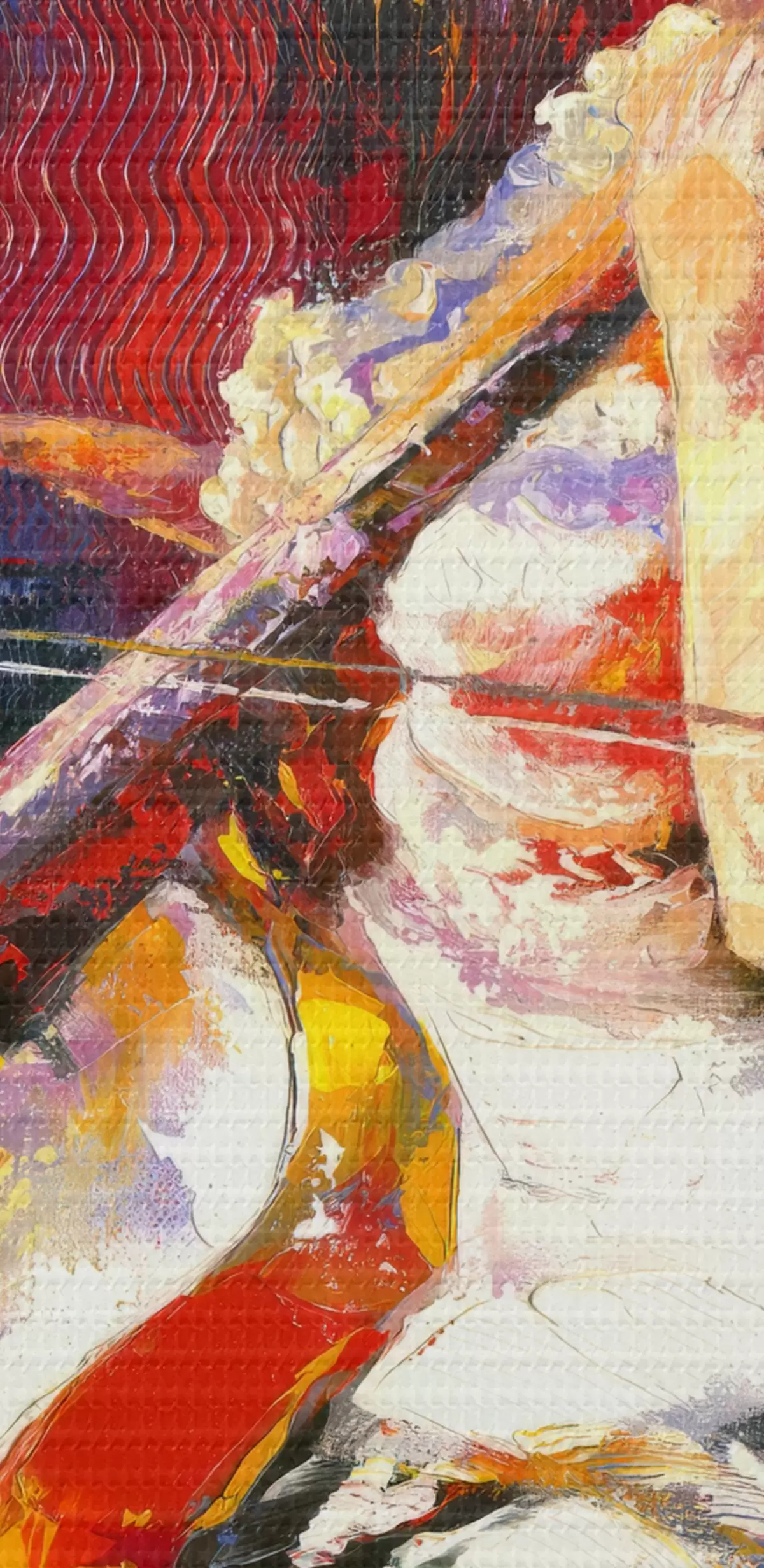 Obraz je možné zavesiť ihneď po jeho prevzatí. Obraz bude napnutý na drevených nosidlách so šírkou 2 cm.
