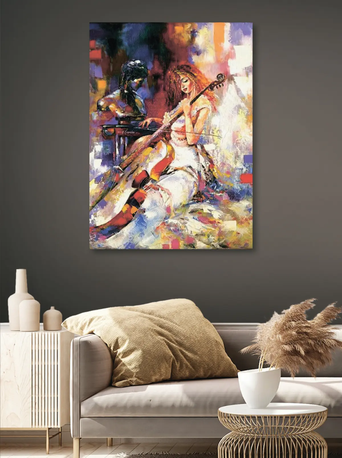 Obraz je možné zavesiť ihneď po jeho prevzatí. Obraz bude napnutý na drevených nosidlách so šírkou 2 cm.