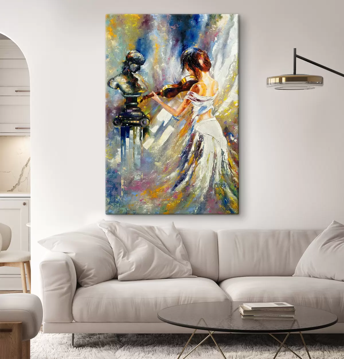 Obraz je možné zavesiť ihneď po jeho prevzatí. Obraz bude napnutý na drevených nosidlách so šírkou 2 cm.