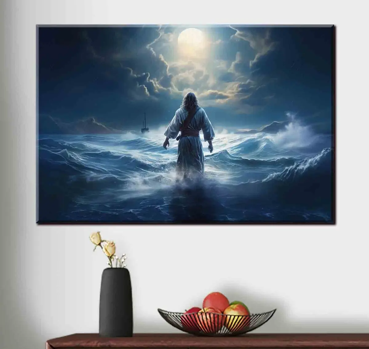 Obraz Ježiš Kristus kráča po vode rozbúreného mora k člnu Nr. s35357
