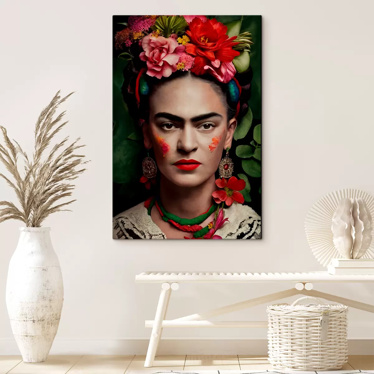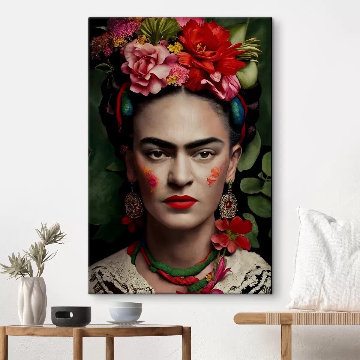Obraz Frida Kahlo s kvetmi na zelenom pozadí Nr. s32861