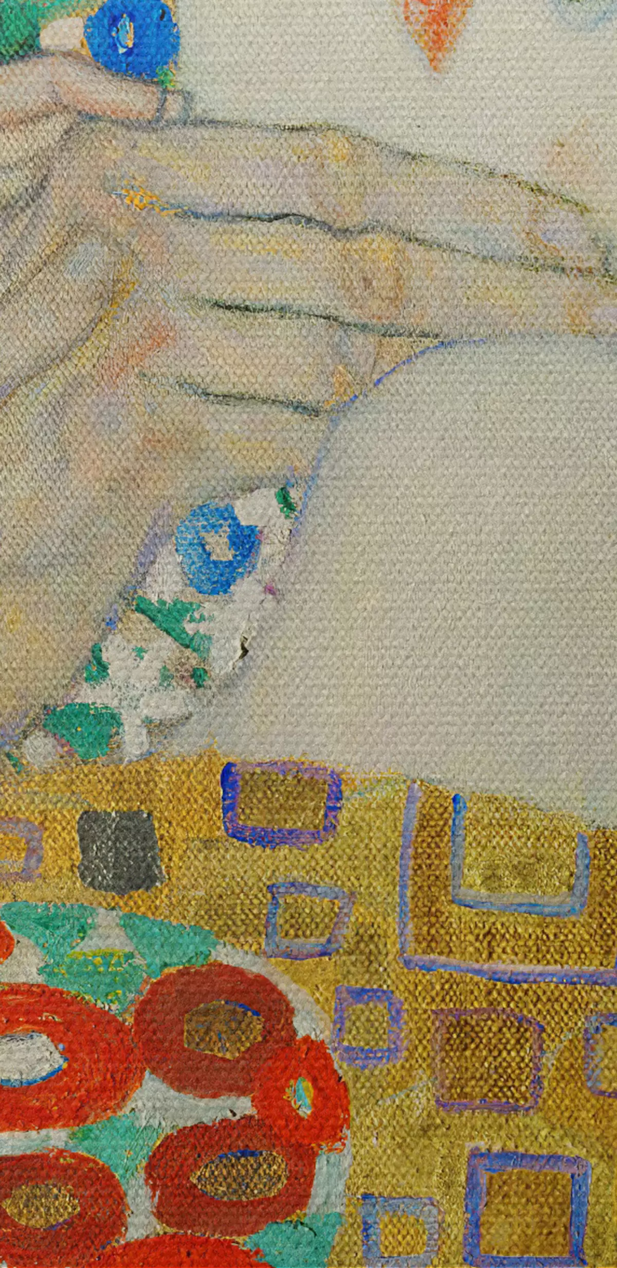 Na natiahnutie plátna na nosidlá bez poškodenia obrazu používame zrkadlový obraz.