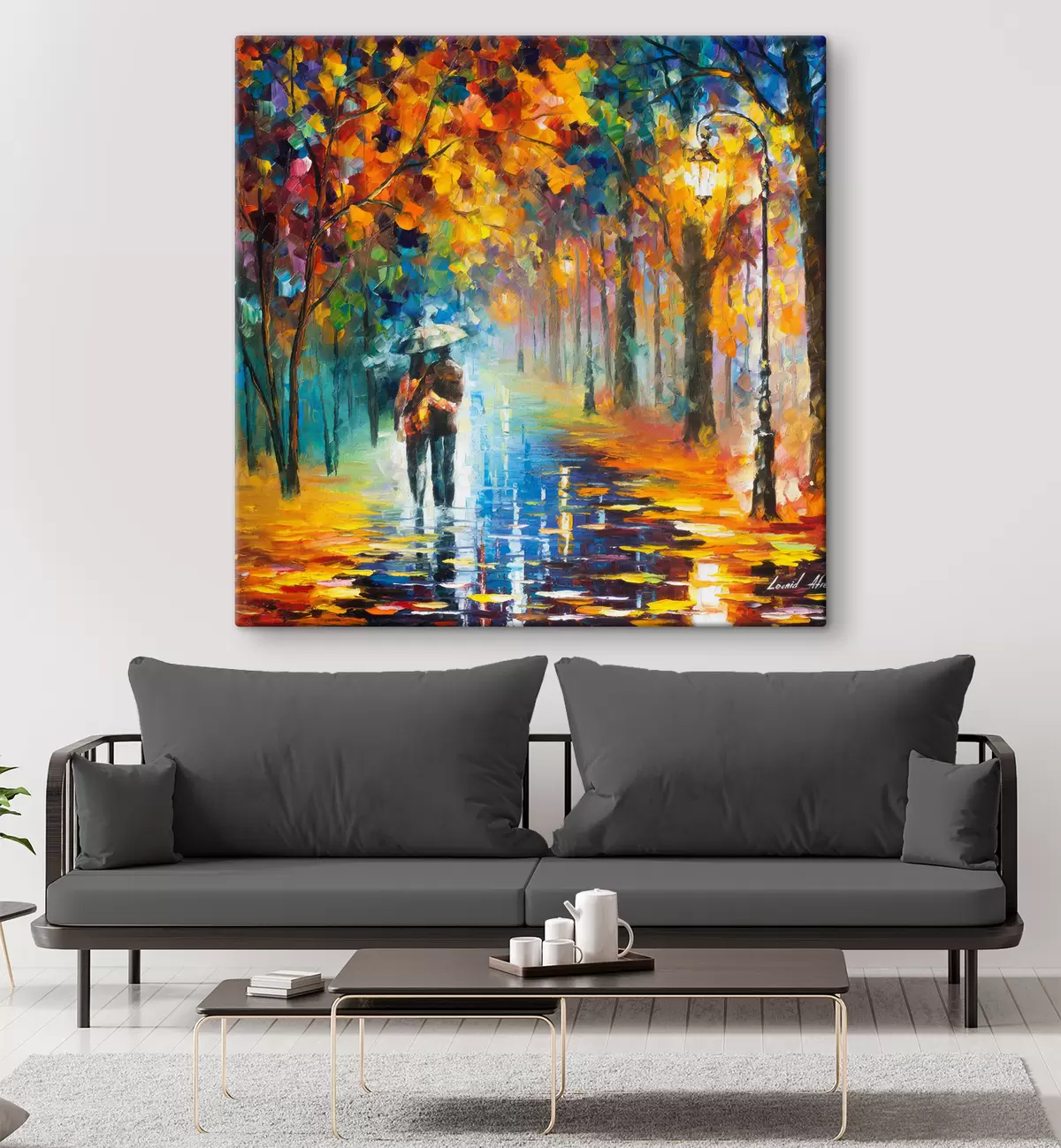 Obraz je možné zavesiť ihneď po jeho prevzatí. Obraz bude napnutý na drevených nosidlách so šírkou 2 cm.