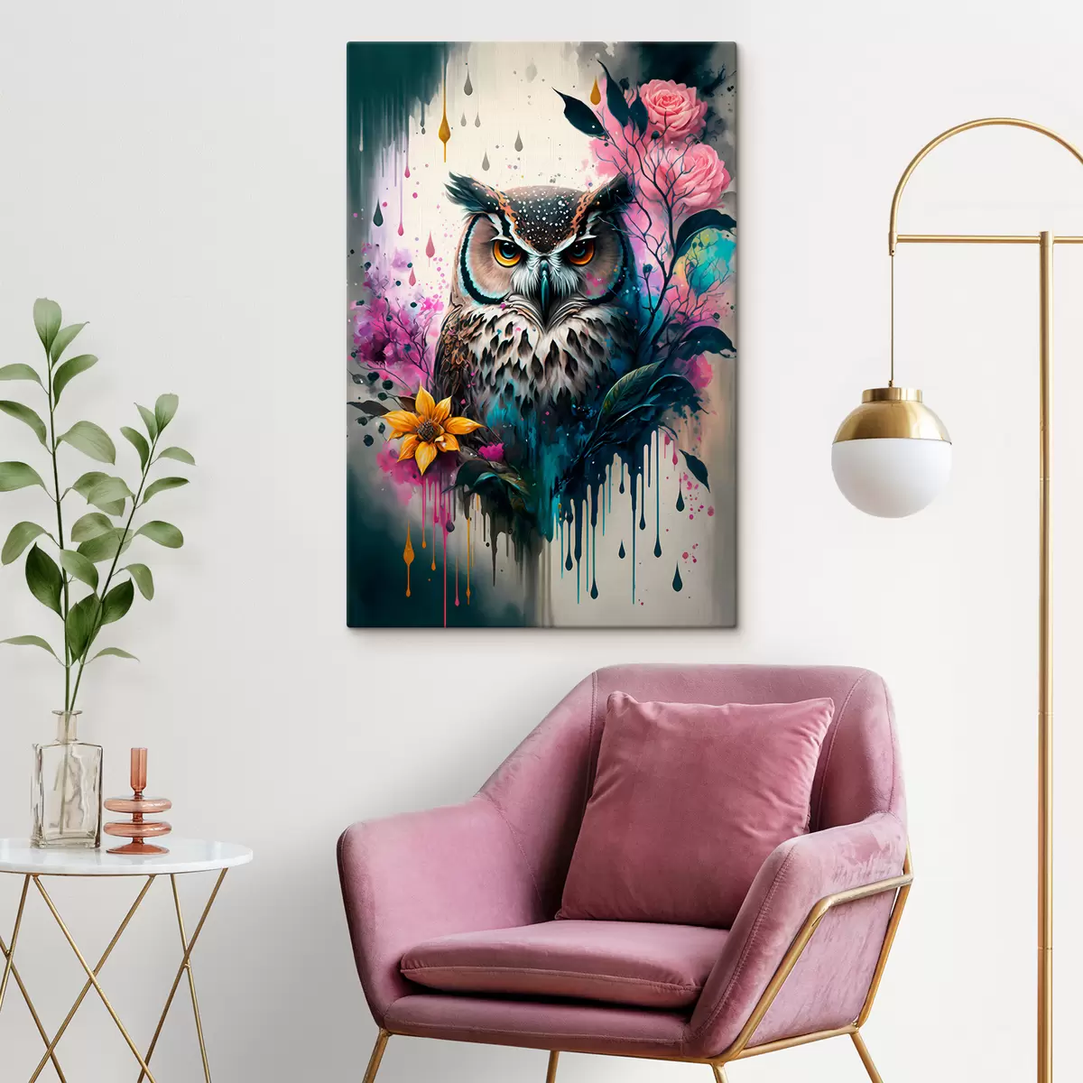 Obraz Denná sova s kvetmi Nr. s35348