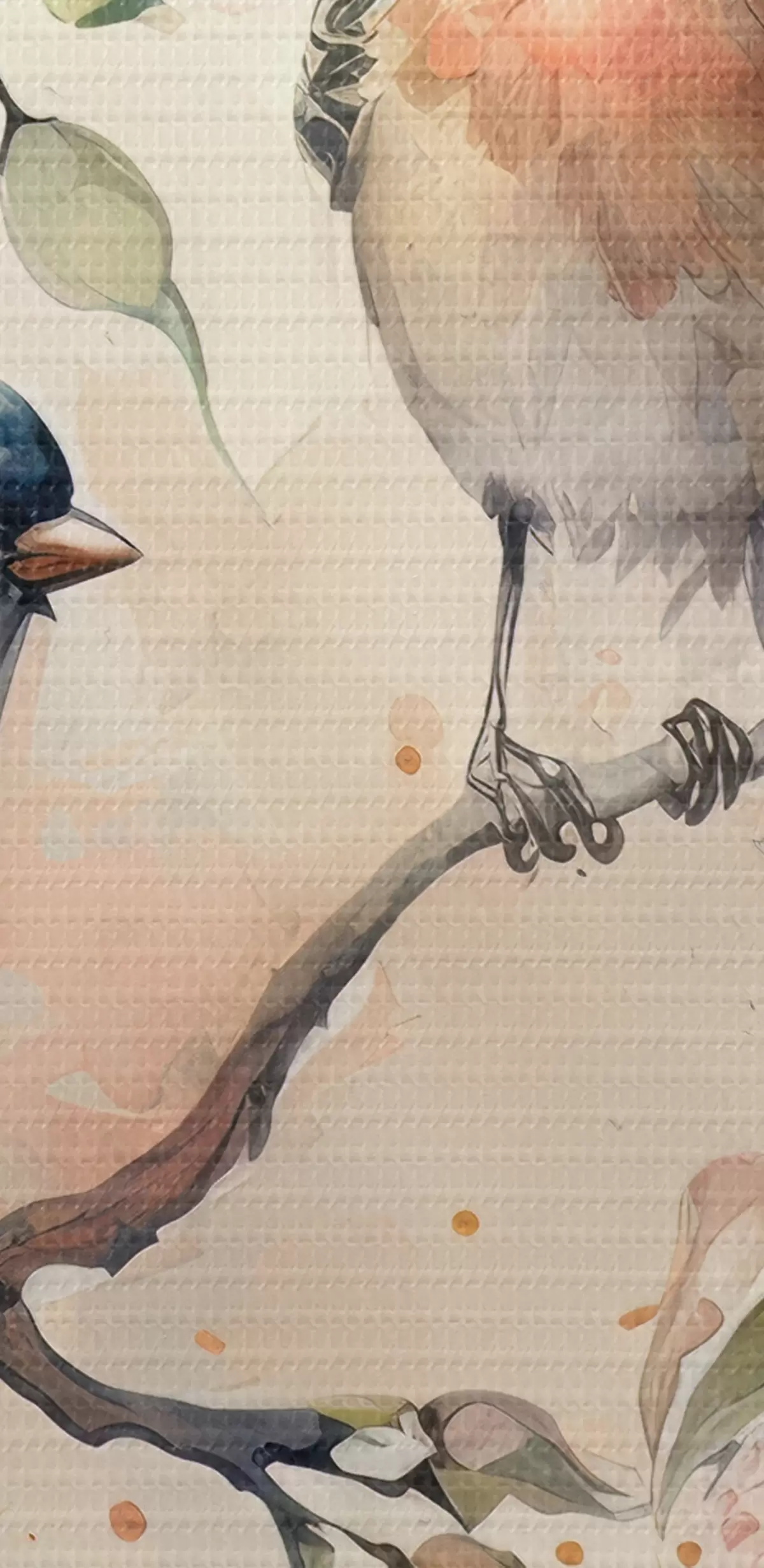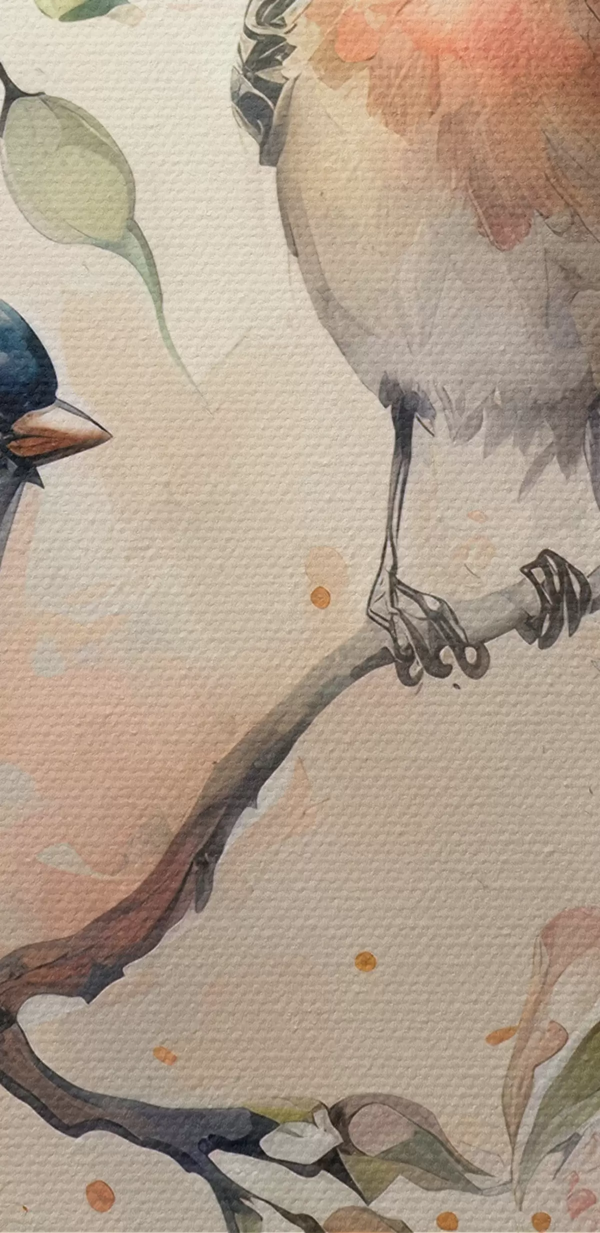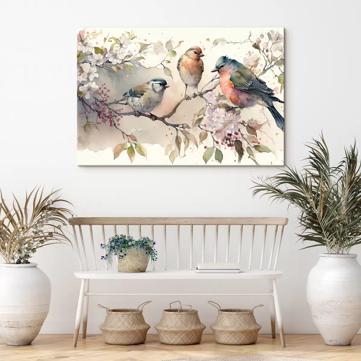 Obraz Viacfarebné vtáky na vetve kvitnúceho stromu Nr. s34490