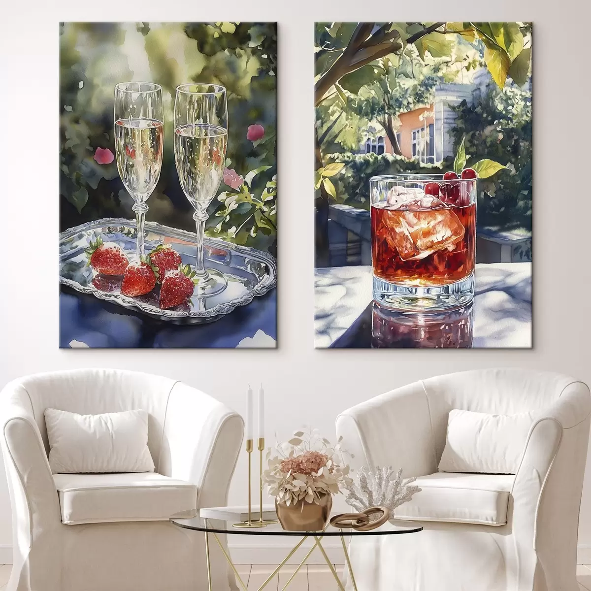 Obraz Lahodné koktaily s bobuľami, akvarelový štýl, estetika, letná príroda Nr. m00415