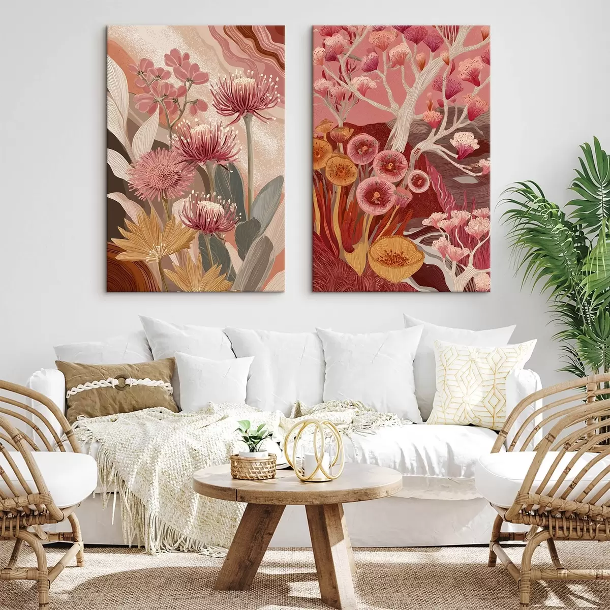 Obraz Kvety v boho štýle, detailná kresba, bordové farby Nr. m00476