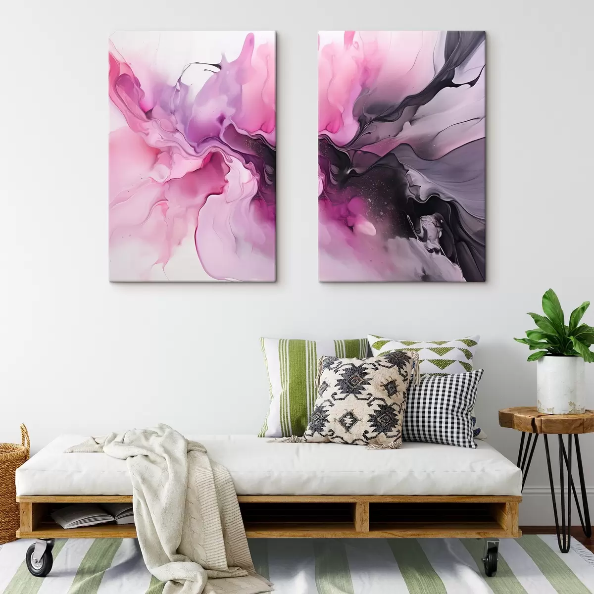 Obraz Abstraktné víry ružovej, fialovej a čiernej farby sa prelínajú do organickej kompozície a vytvárajú pocit pohybu Nr. m00532
