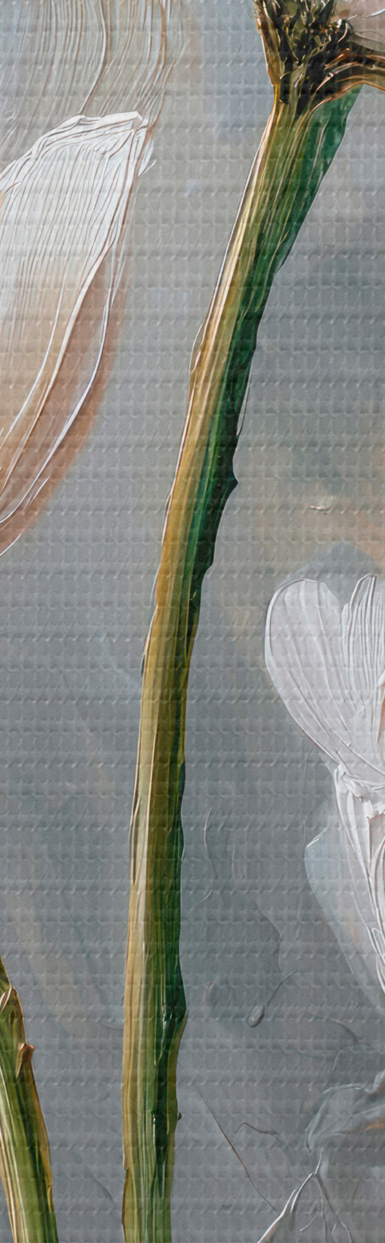 Obraz Objemová maľba bielych kvetov so žltými akcentmi na sivom pozadí Nr. m00568