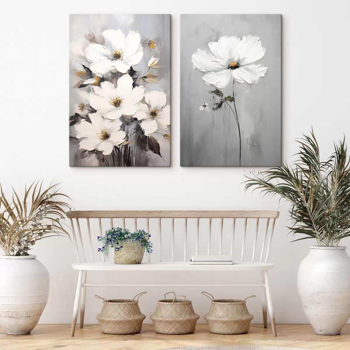 Obraz Umelecká kompozícia s bielymi kvetmi a textúrovaným povrchom v minimalistickom štýle Nr. m00574
