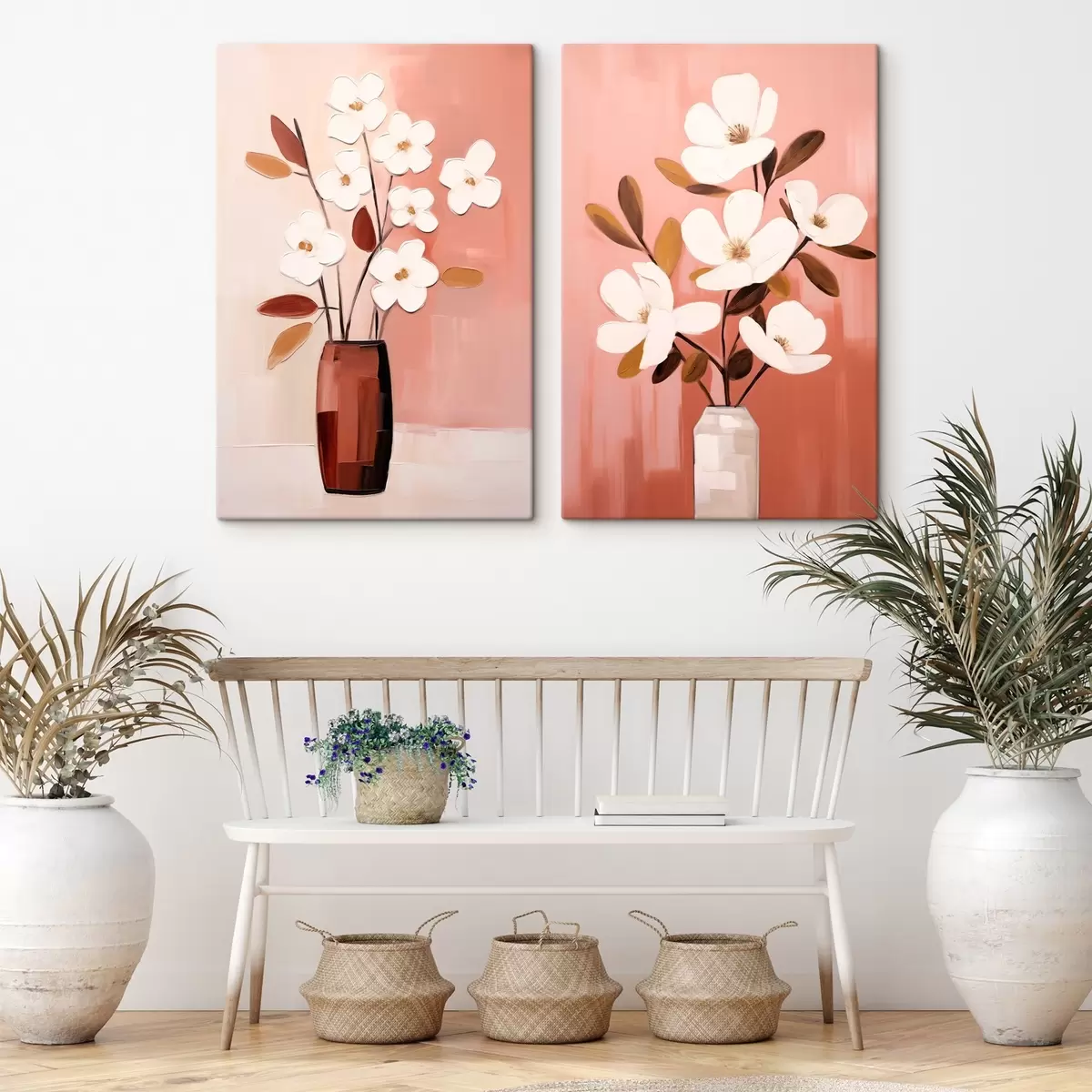 Obraz Kompozícia s kontrastnými vázami a textúrovanými bielymi kvetmi Nr. m00575