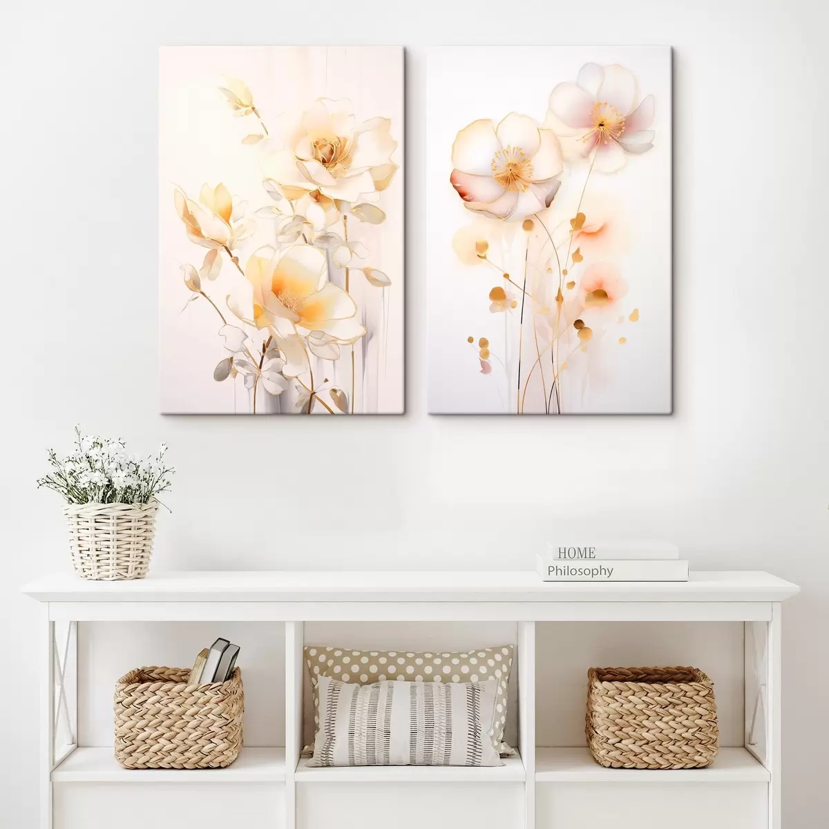 Obraz Kvetinový duet: jemný diptych v akvarelovom štýle s elegantnými líniami Nr. m00577