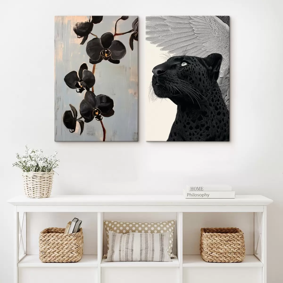 Obraz Tmavé orchidey a okrídlené zviera: umelecká kompozícia Nr. m00640