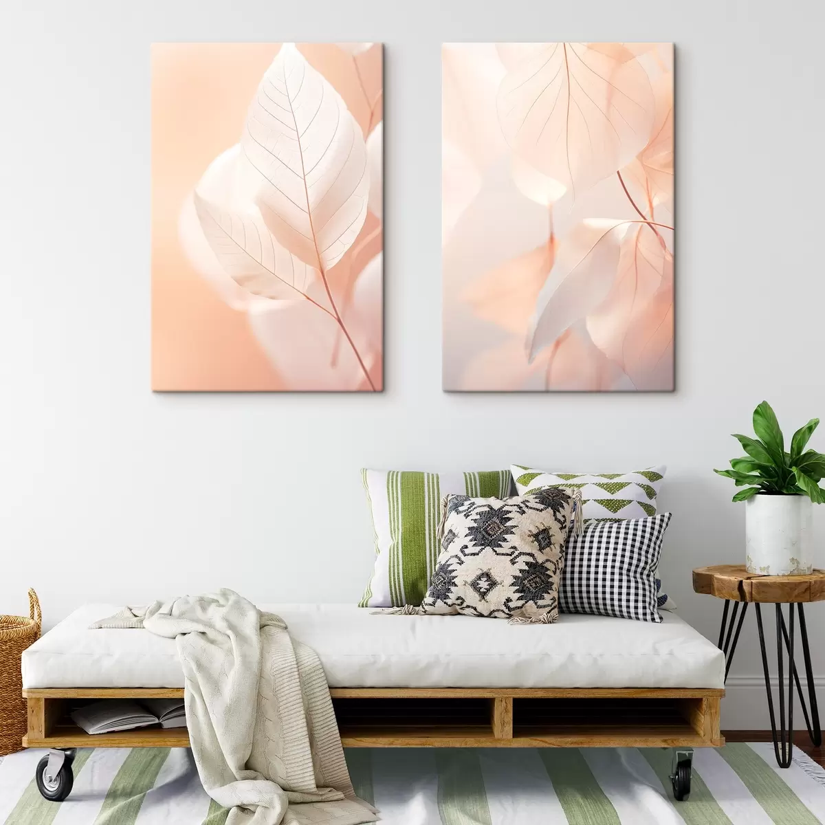 Obraz Detailný záber na priesvitné listy s jemnými žilkami, jemná broskyňová a biela paleta farieb, rozmazané pozadie Nr. m00647