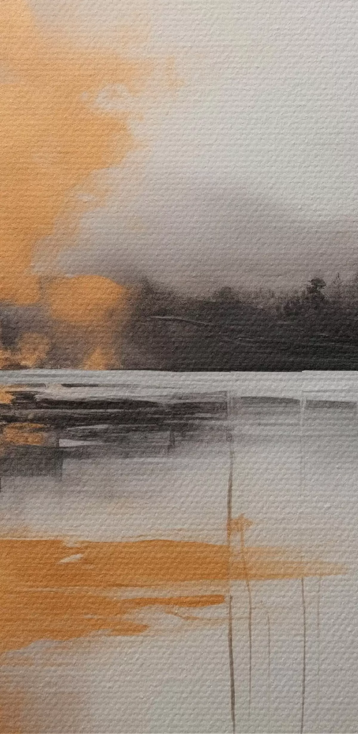 Obraz Abstraktná krajina s jazerom, stromom a žltou hmlou , voda sa odráža a zamračená obloha Nr. m00657