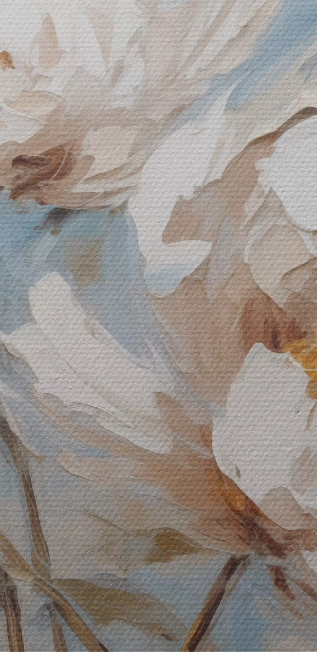 Obraz je možné zavesiť ihneď po jeho prevzatí. Obraz bude napnutý na drevených nosidlách so šírkou 2 cm.