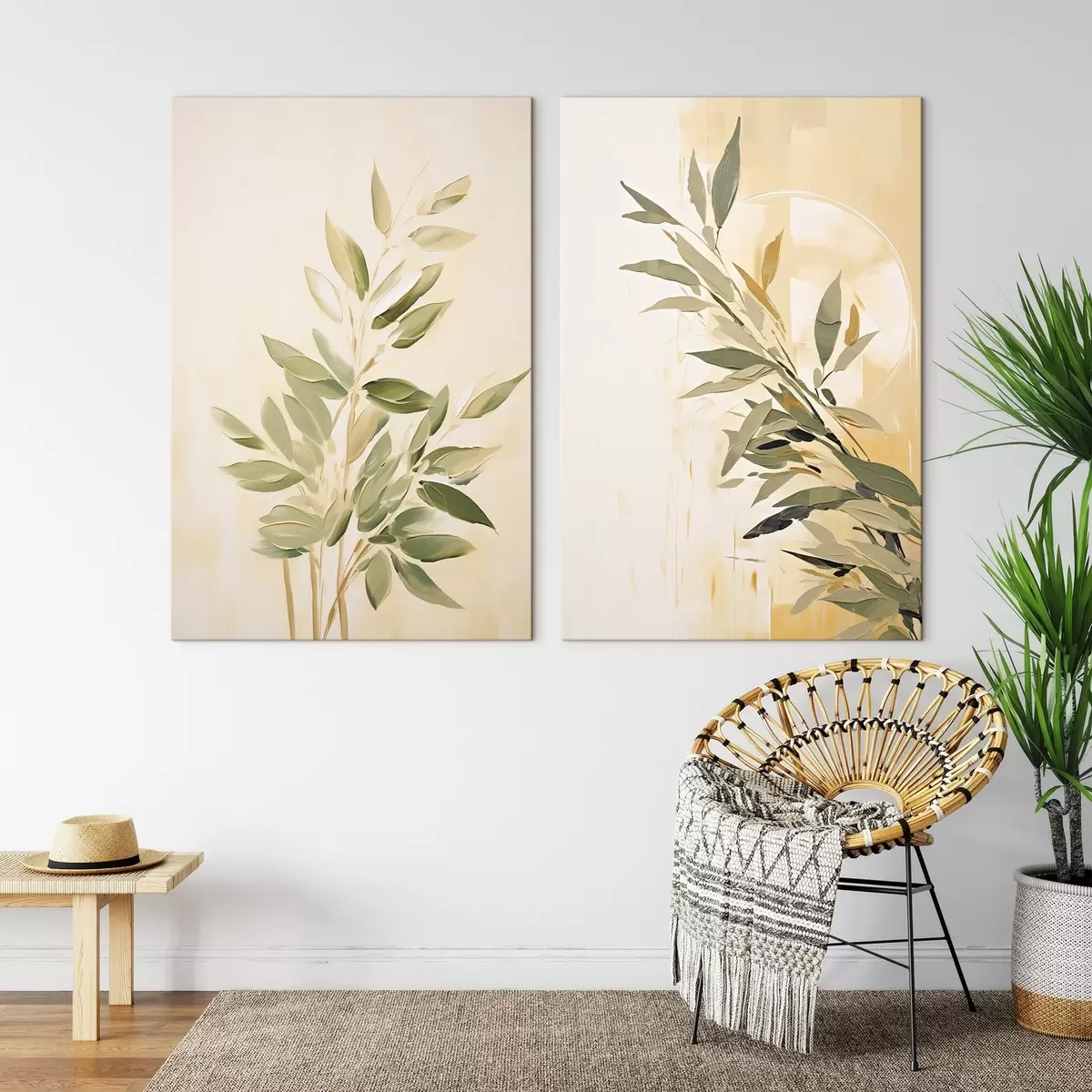 Obraz Botanická vetva so zelenými listami na teplom pozadí Nr. m00686
