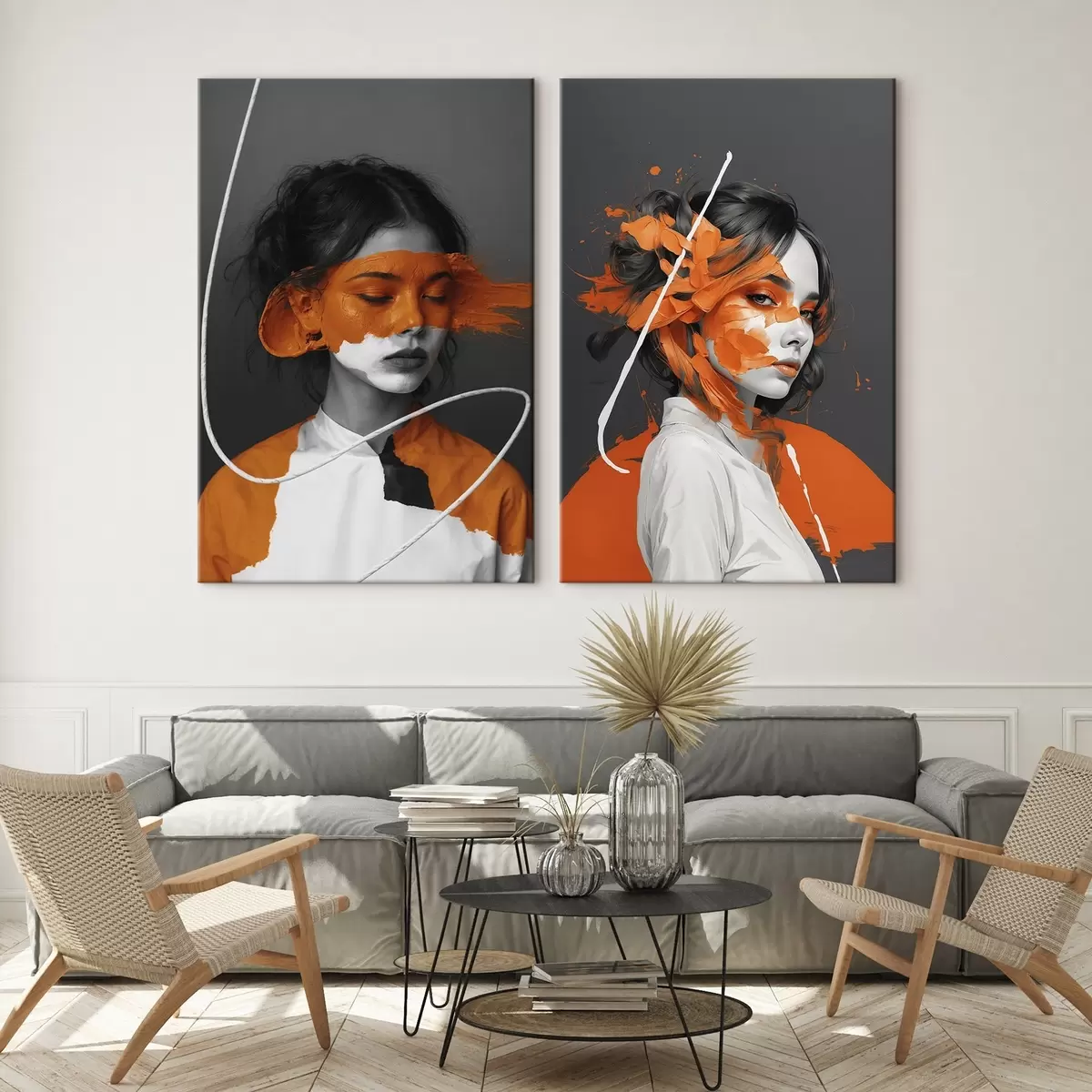 Obraz Portréty dievčat s abstraktnými oranžovými ťahmi štetca Nr. m00693