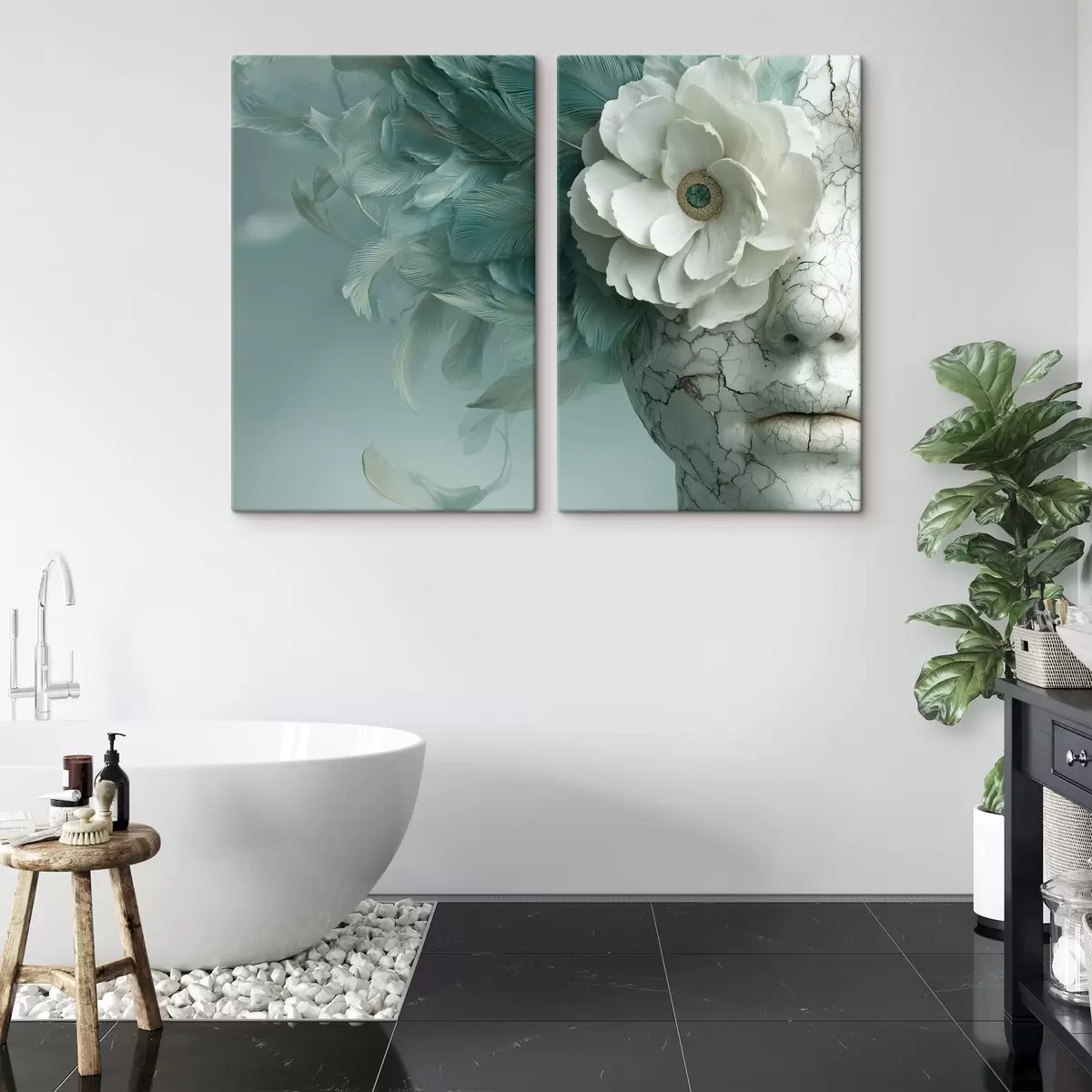 Obraz mramorová tvár dievčaťa s kvetinou a perami Nr. m00699