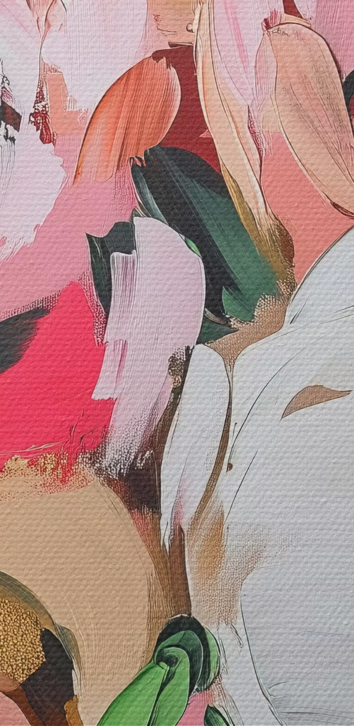 Obraz je možné zavesiť ihneď po jeho prevzatí. Obraz bude napnutý na drevených nosidlách so šírkou 2 cm.