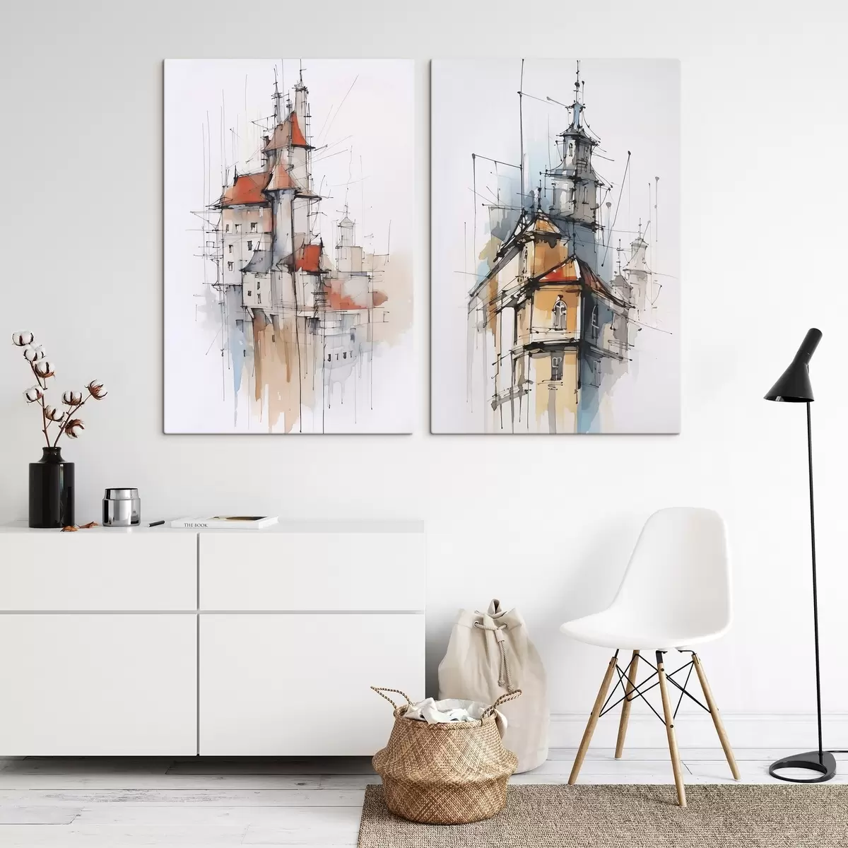 Obraz Domčeky imitácia skica a akvarel Nr. m00725