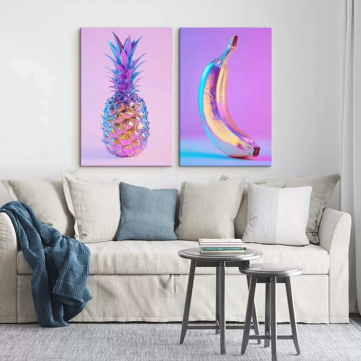 Obraz jasný lesklý ananás a banán v štýle pop art Nr. m00737