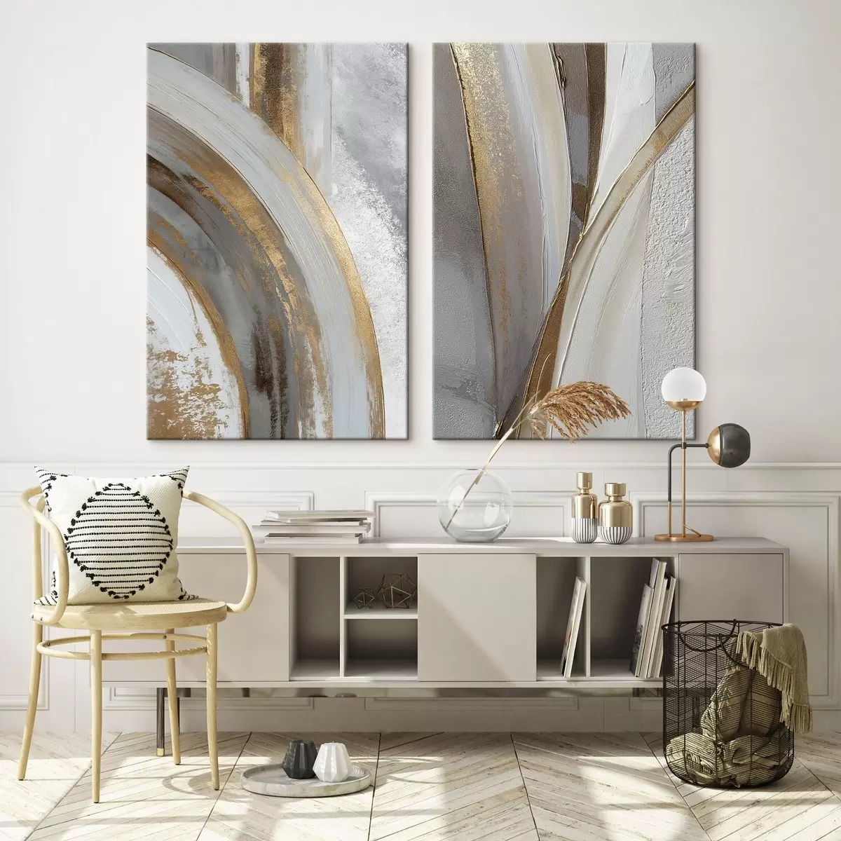 Obraz Abstraktné sivé a žlté oblúky v modernom štýle Nr. m00749