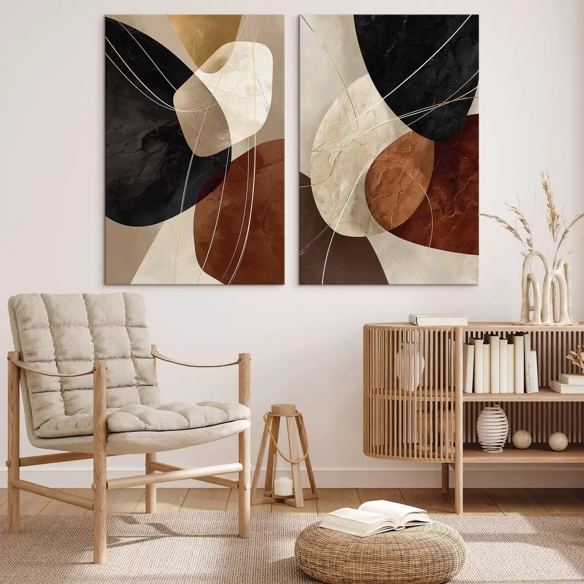 Obraz Geometrické ovály v teplej farebnej palete so žltými čiarami Nr. m00763