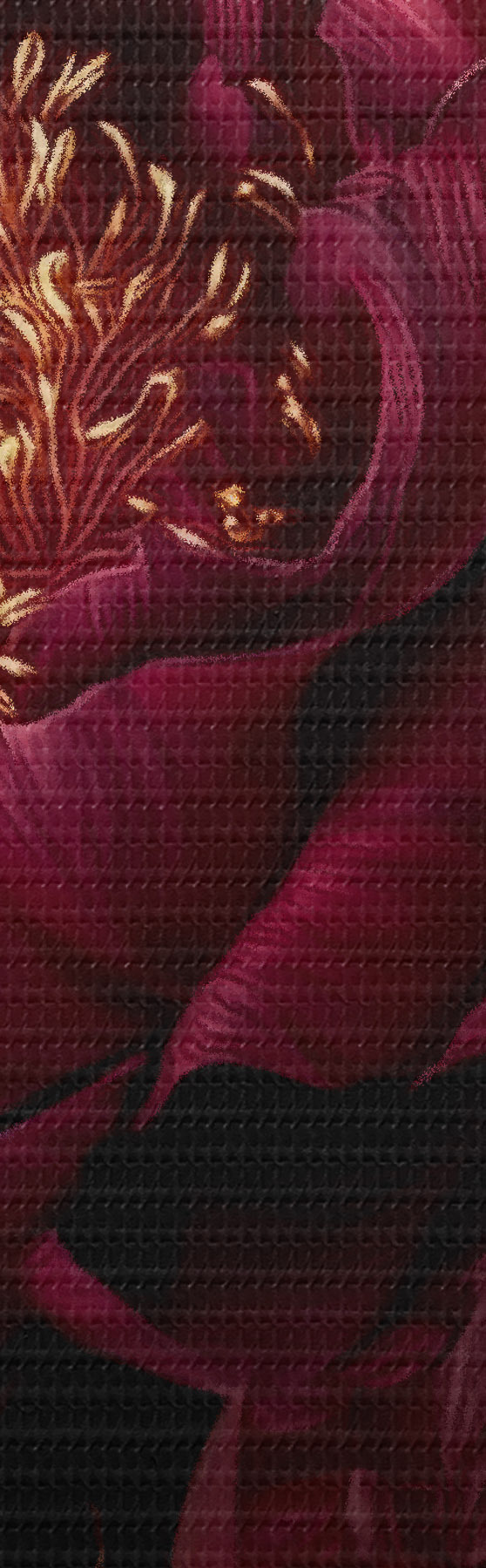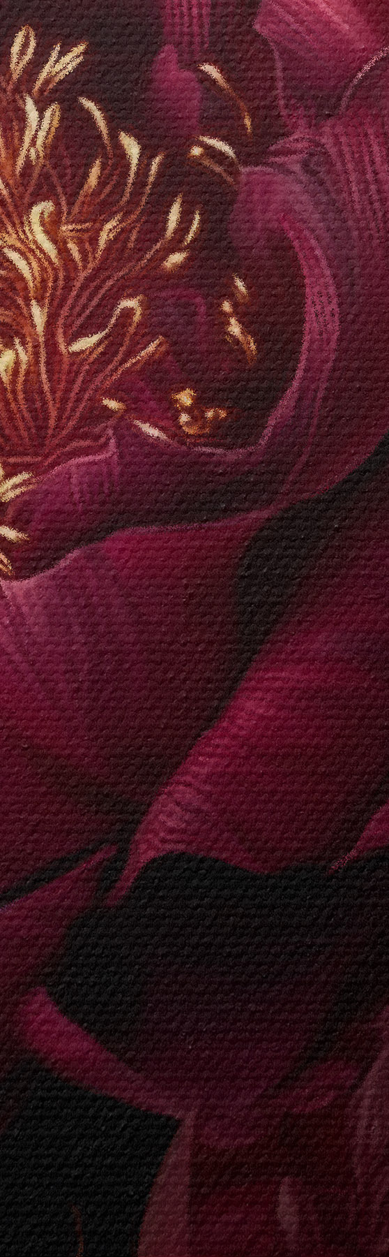 Obraz Burgundské pivonky a silueta s hlavou v tvare mesiaca na čiernom pozadí Nr. m00765