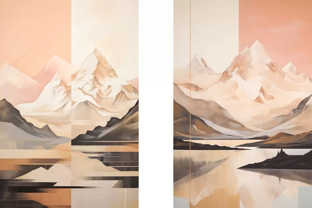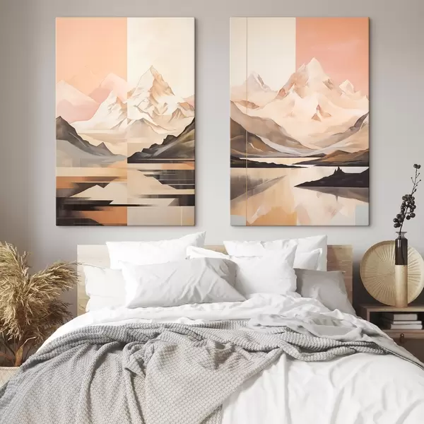 Obraz Abstraktná krajina s horami a jazerom, pastelové farby, minimalistický štýl Nr. m00830
