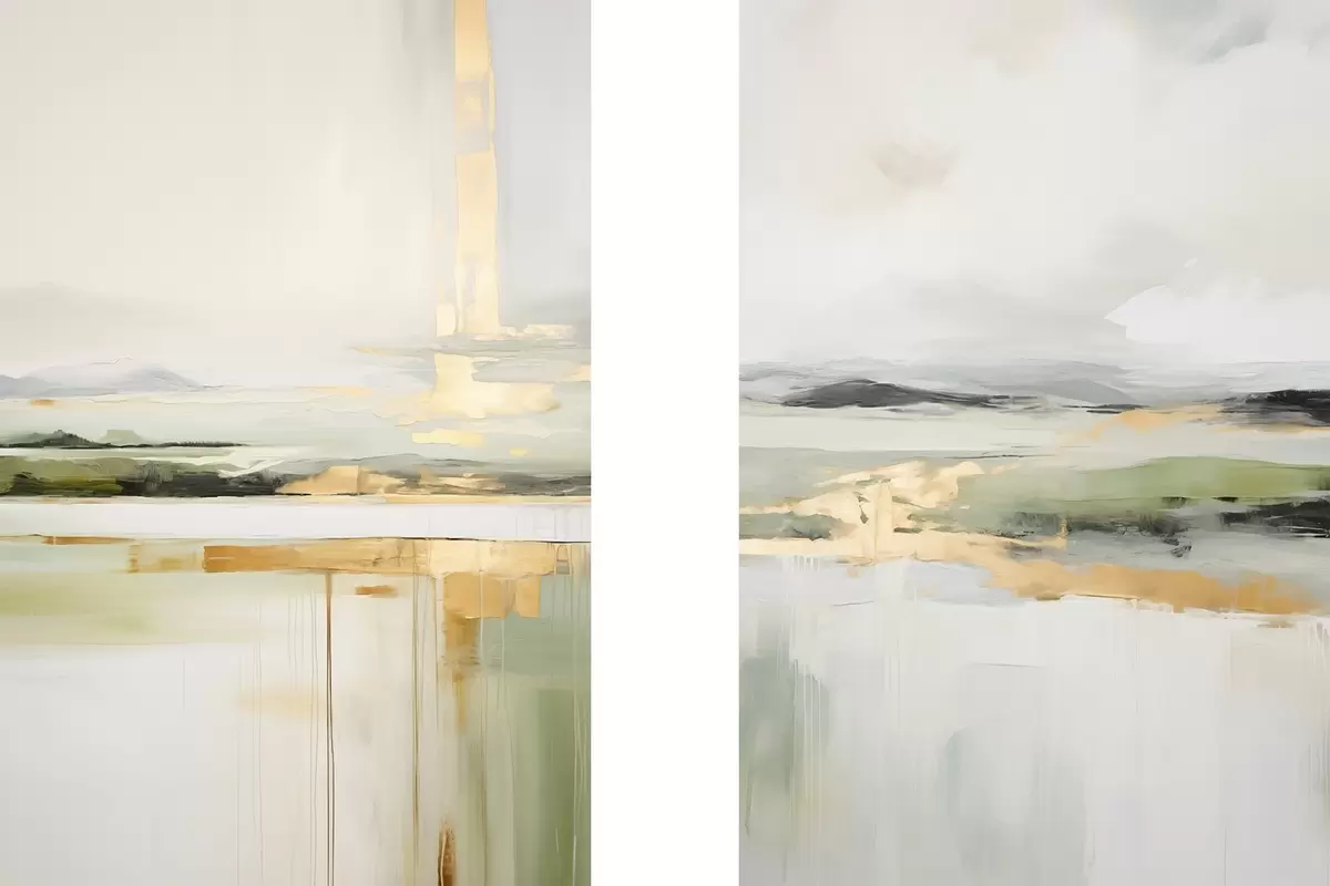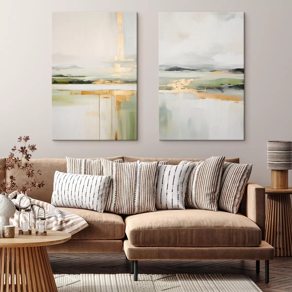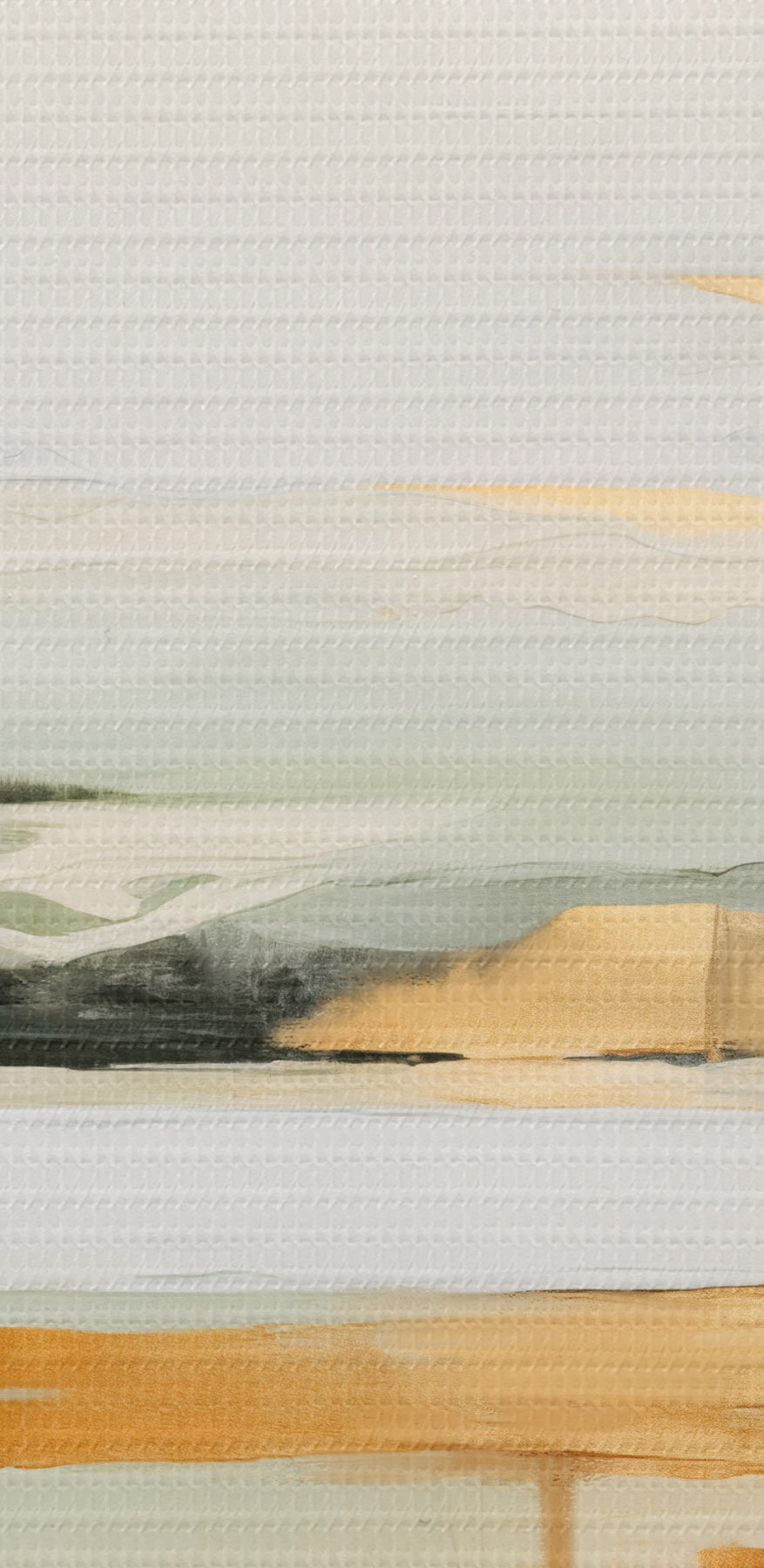 Obraz Abstraktná krajina so žltými akcentmi, minimalistická kompozícia zeme, vody a oblohy, s tlmenými farbami Nr. m00877