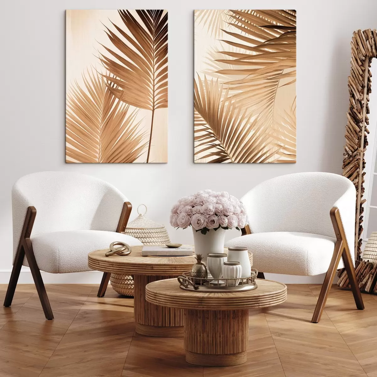 Obraz Palmové listy v hnedých odtieňoch, neutrálne pozadie, minimalistický štýl, prirodzené osvetlenie, tropická atmosféra Nr. m00880