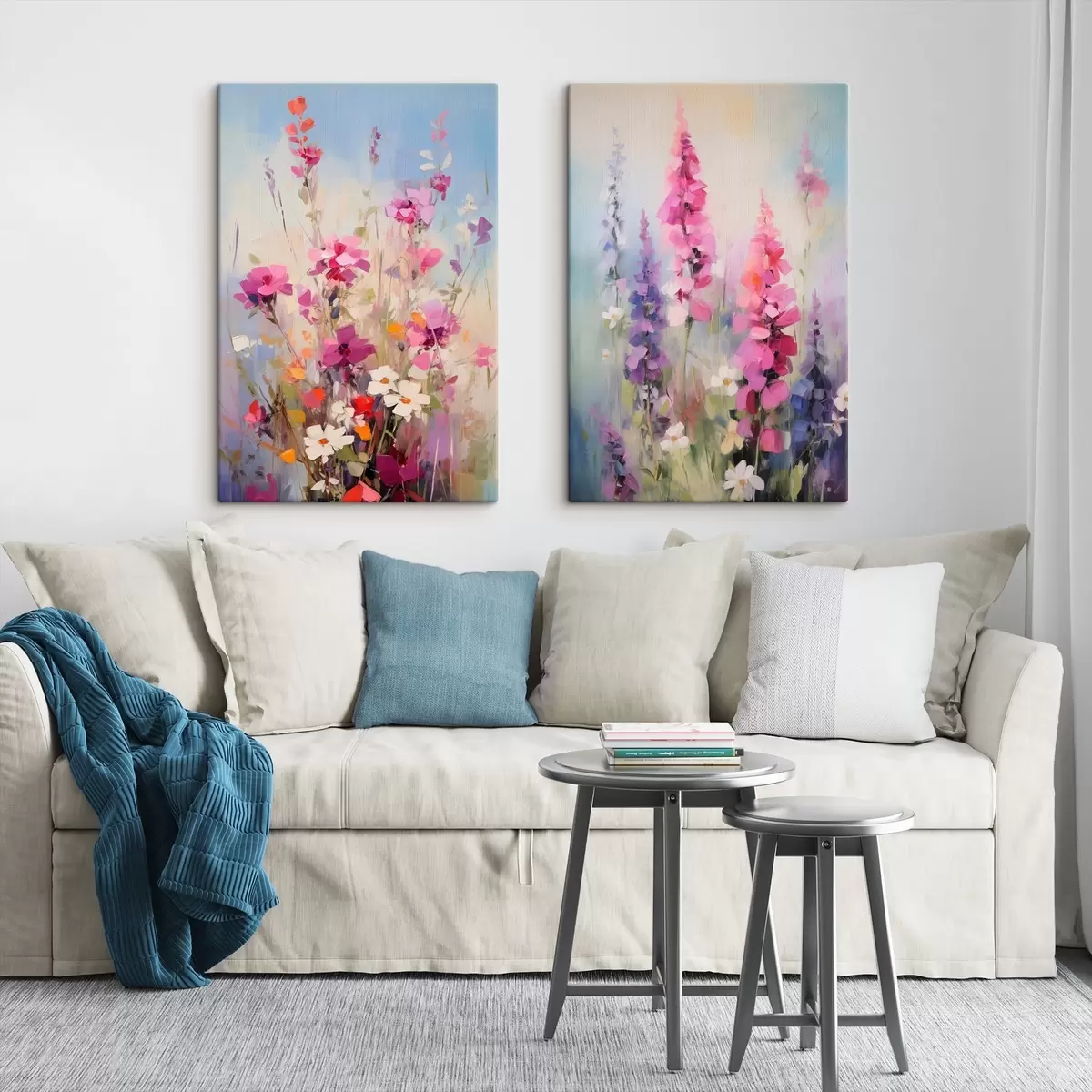 Obraz Živé kvety s bielymi sedmokráskami na poli, jemné ťahy štetcom, pastelové farby, impresionistický štýl Nr. m00882