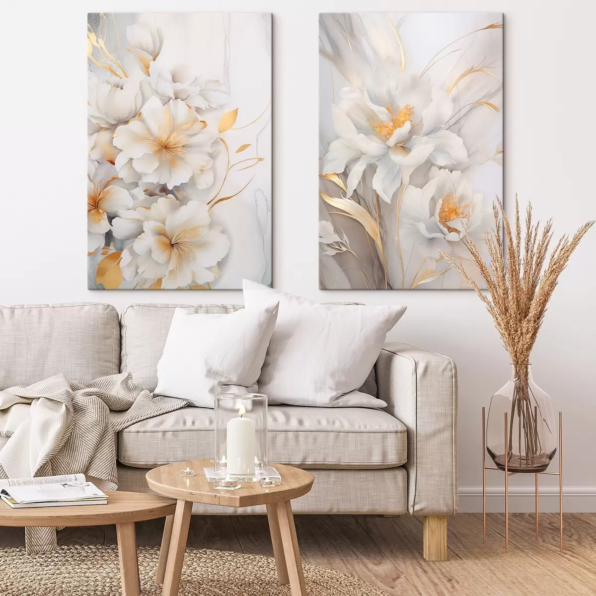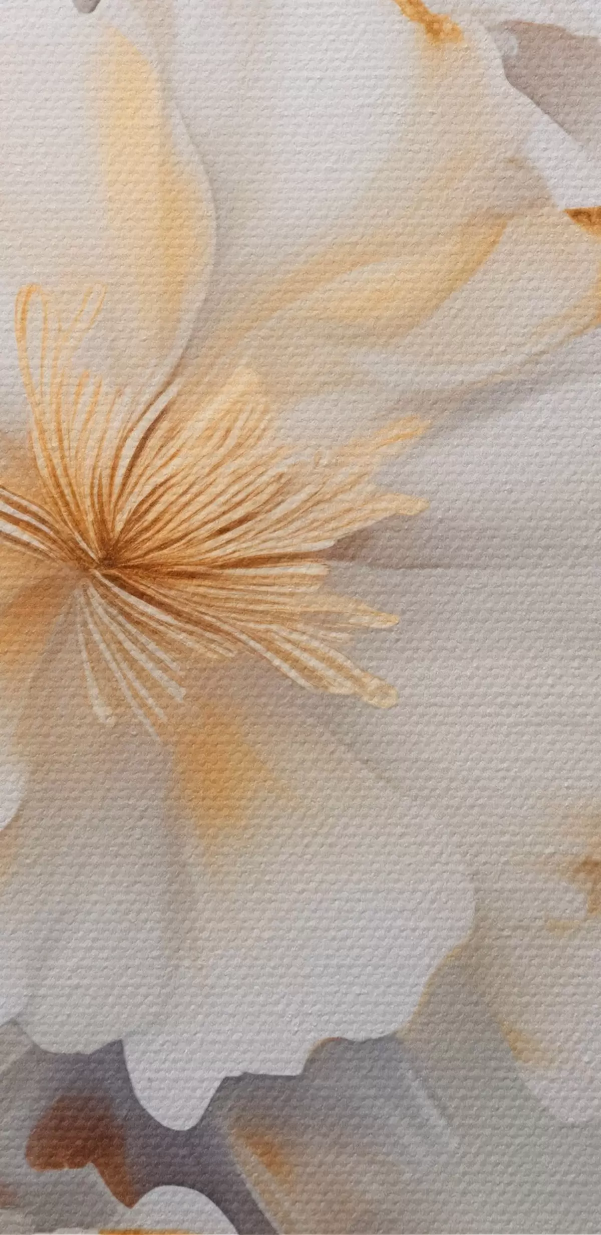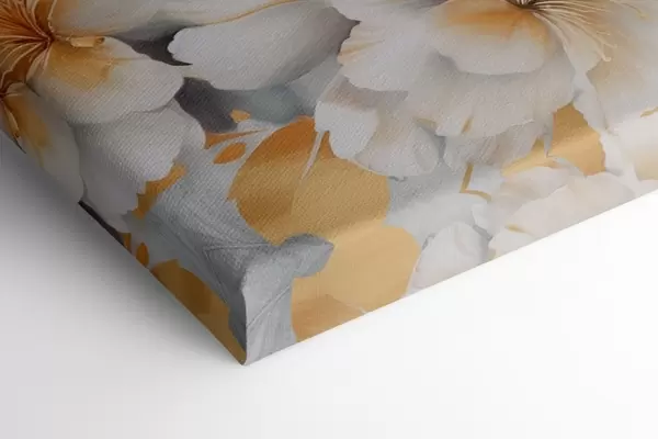 Obraz Biele kvety so žltými detailmi, okvetné lístky s jemnými tieňmi, svetlé pozadie s jemným mramorovým efektom Nr. m00889