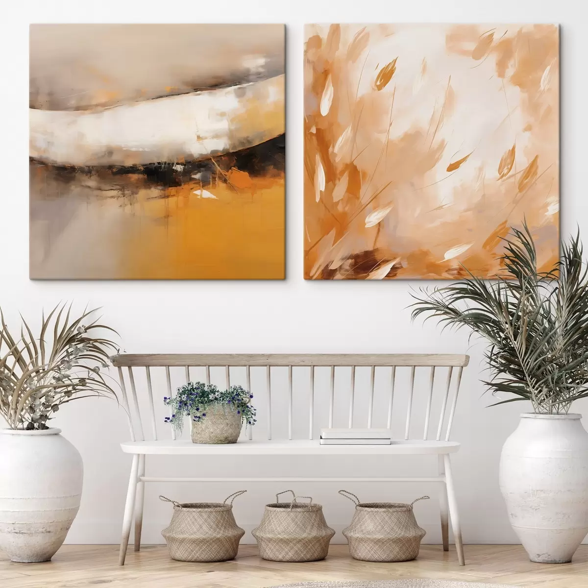 Obraz Abstraktný diptych v olejovom štýle so žltooranžovými a čiernymi tónmi Nr. m00897
