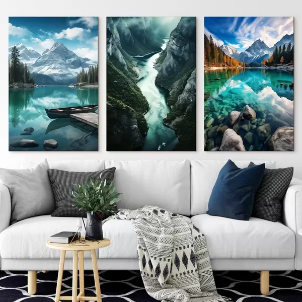 Obraz Alpské jazerá a výhľady na fjordy v chladných odtieňoch tyrkysovej farby Nr. m00961