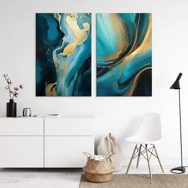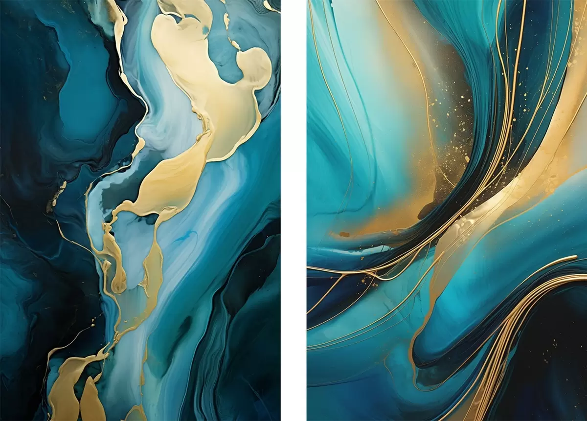 Obraz Tyrkysová abstraktná tekutina s teplými kovovými prúdmi Nr. m00965