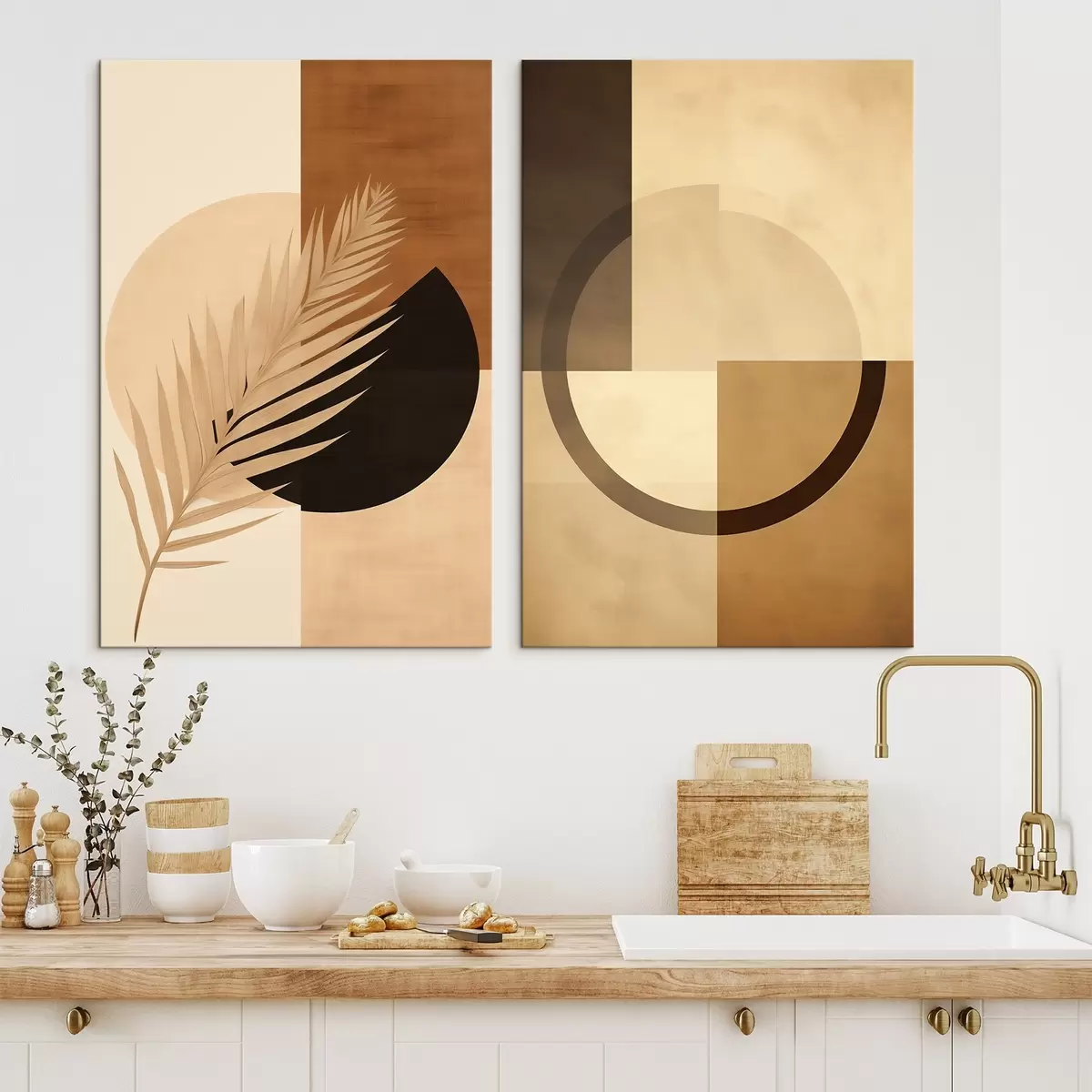 Obraz Terakotová a béžová geometria s motívom palmových listov Nr. m00968