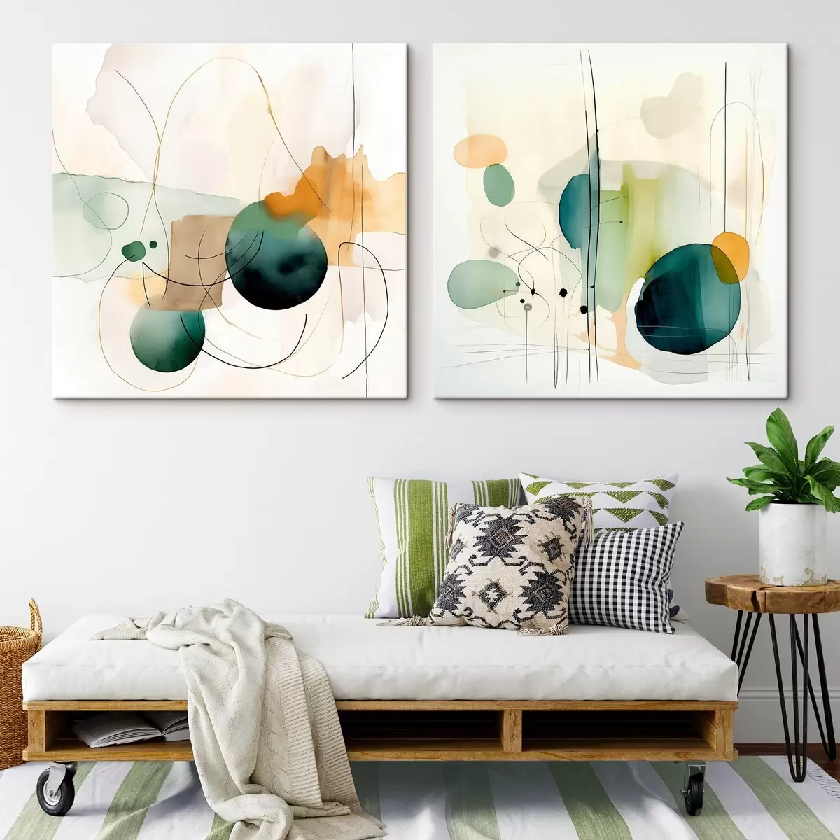 Obraz Dvojdielna abstraktná kompozícia s jemnými farebnými škvrnami Nr. m00985