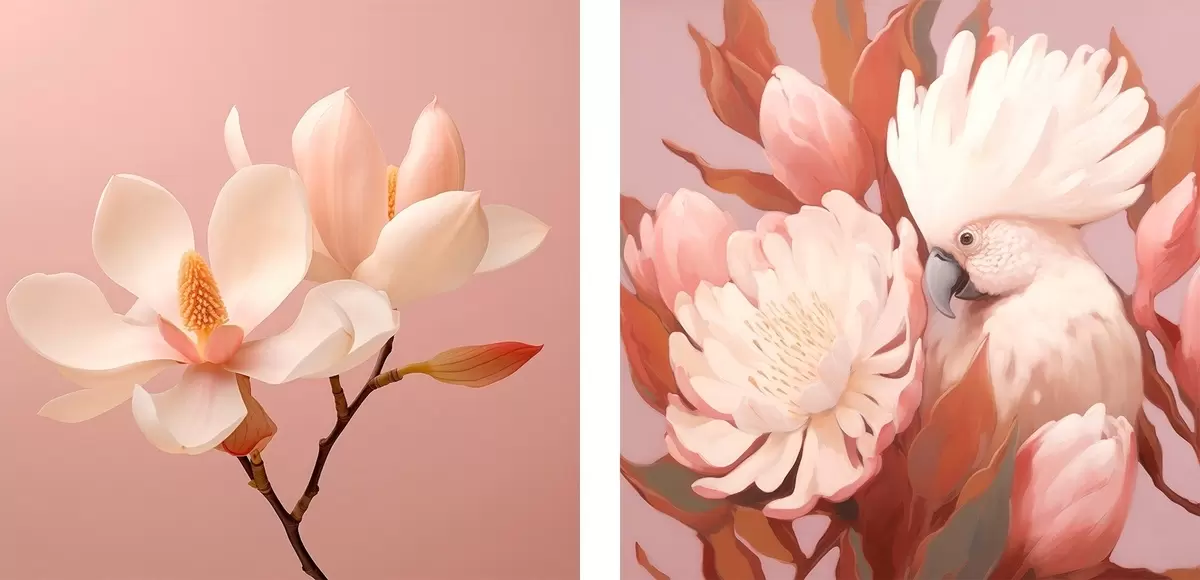 Obraz Kvetinová kompozícia s vtákom v umeleckom ilustračnom štýle Nr. m00994