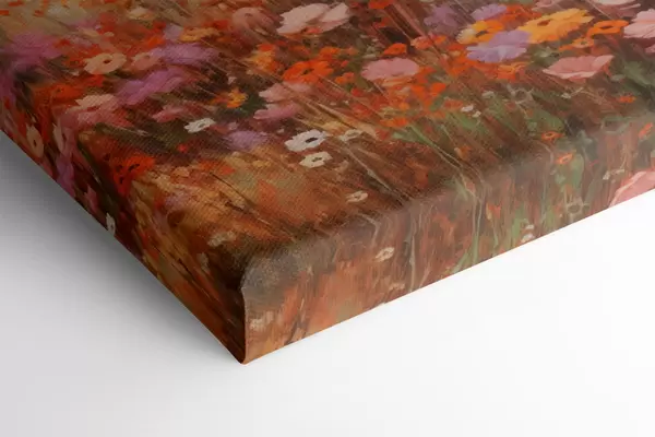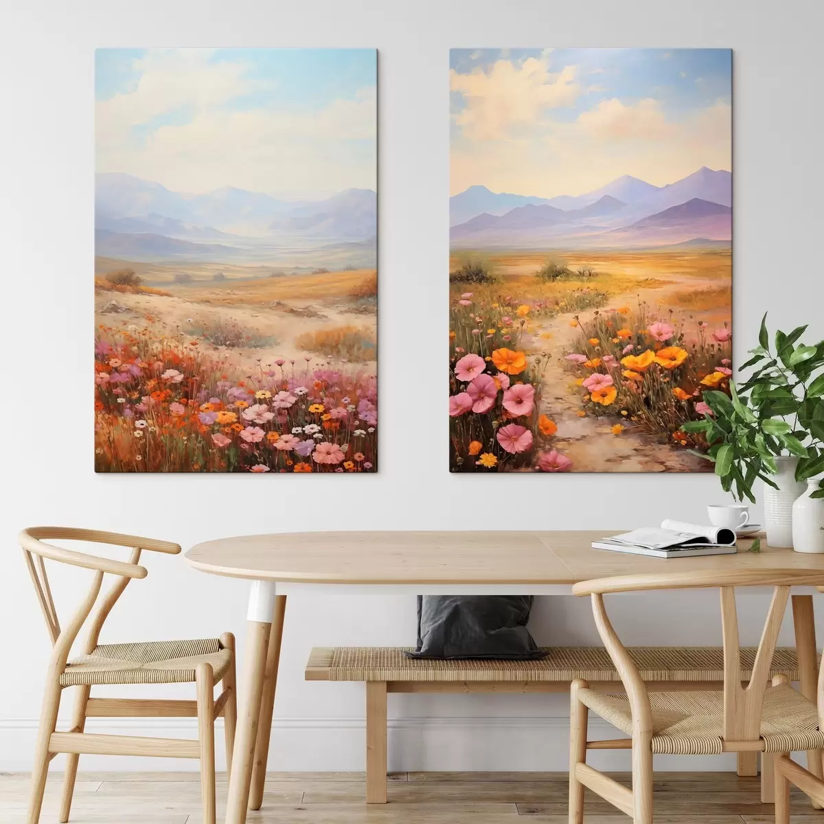 Obraz Krajina, pole farebných kvetov s horami v pozadí, jemné pastelové farby Nr. m01003