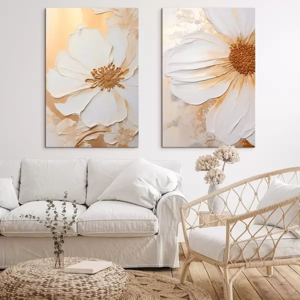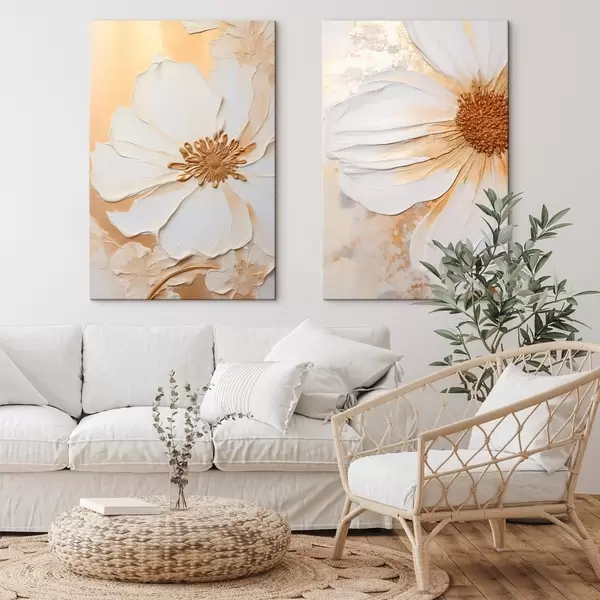 Obraz Biela kvetina s jemnými okvetnými lístkami, textúrované abstraktné pozadie, elegantné, dekoratívne umenie Nr. m01006
