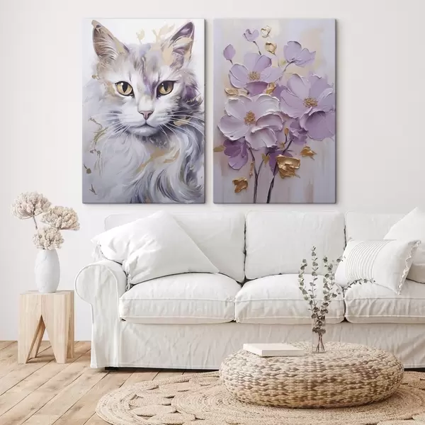 Obraz Abstraktné kvety a mačka Nr. m01056