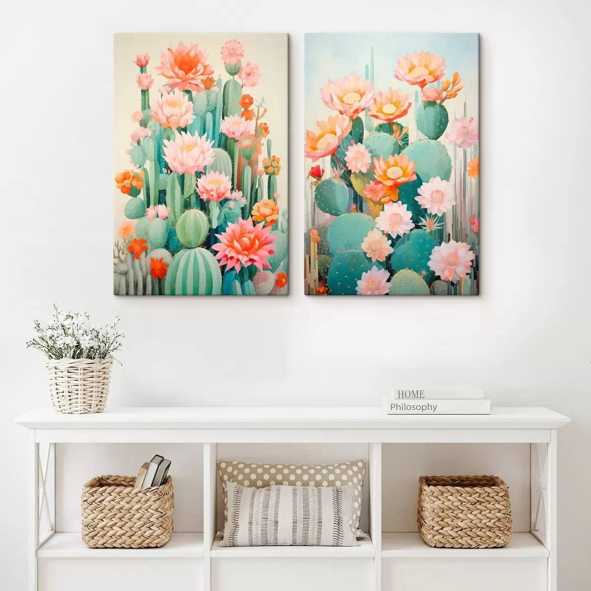 Obraz Kaktusy s veľkými kvetmi, pastelovou paletou a pocitom pokoja Nr. m01086