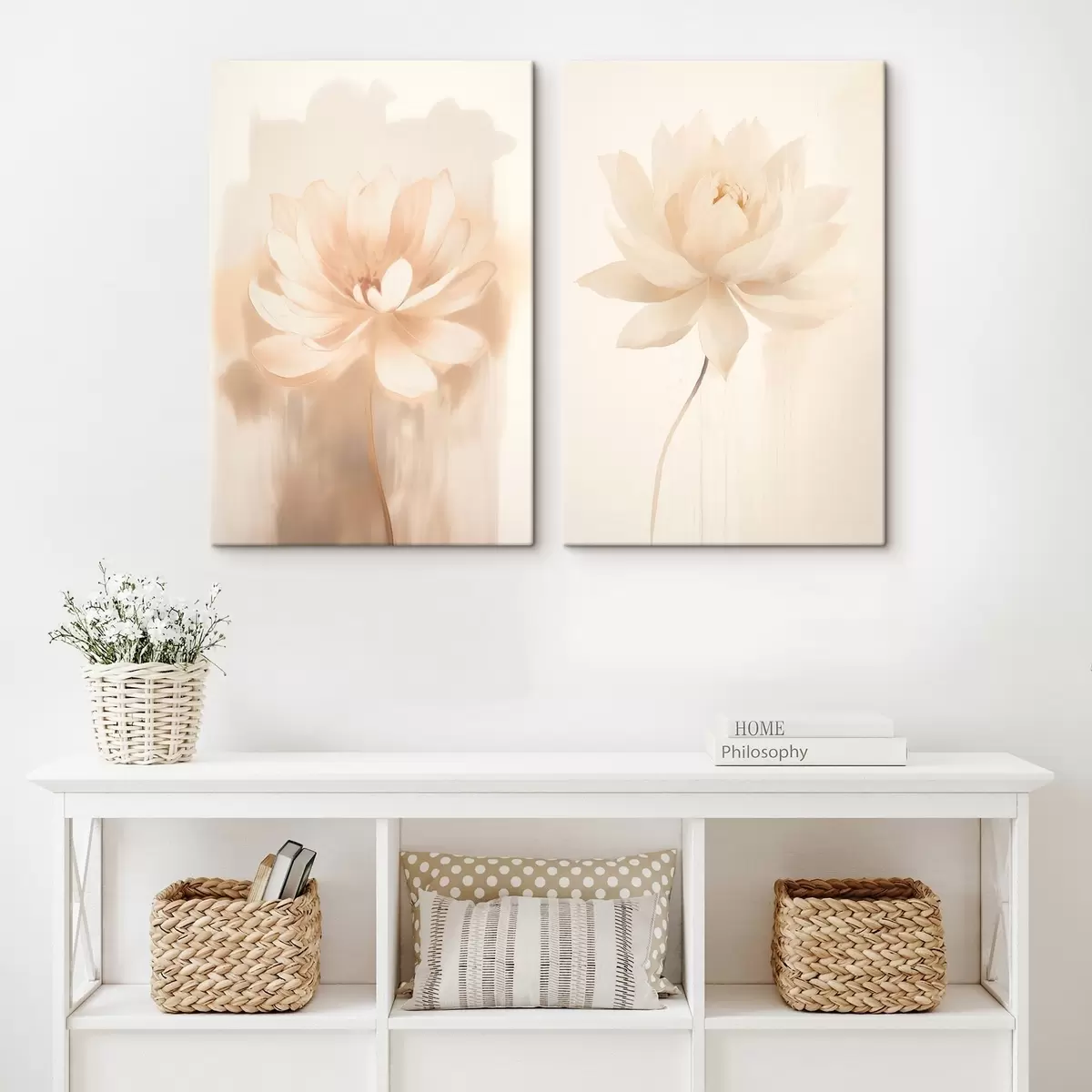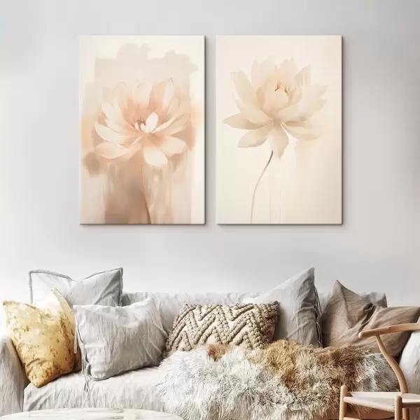 Obraz Kvetinová kompozícia v teplých béžových odtieňoch s ľahkými ťahmi štetcom a vzdušným pozadím Nr. m01087
